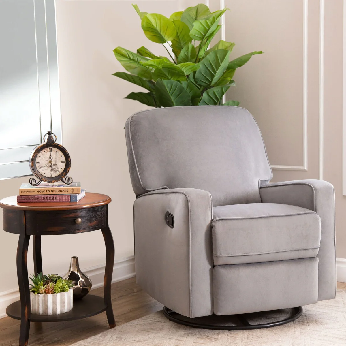 Abbyson Bella Grey Fabric Swivel Glider Recliner Chair