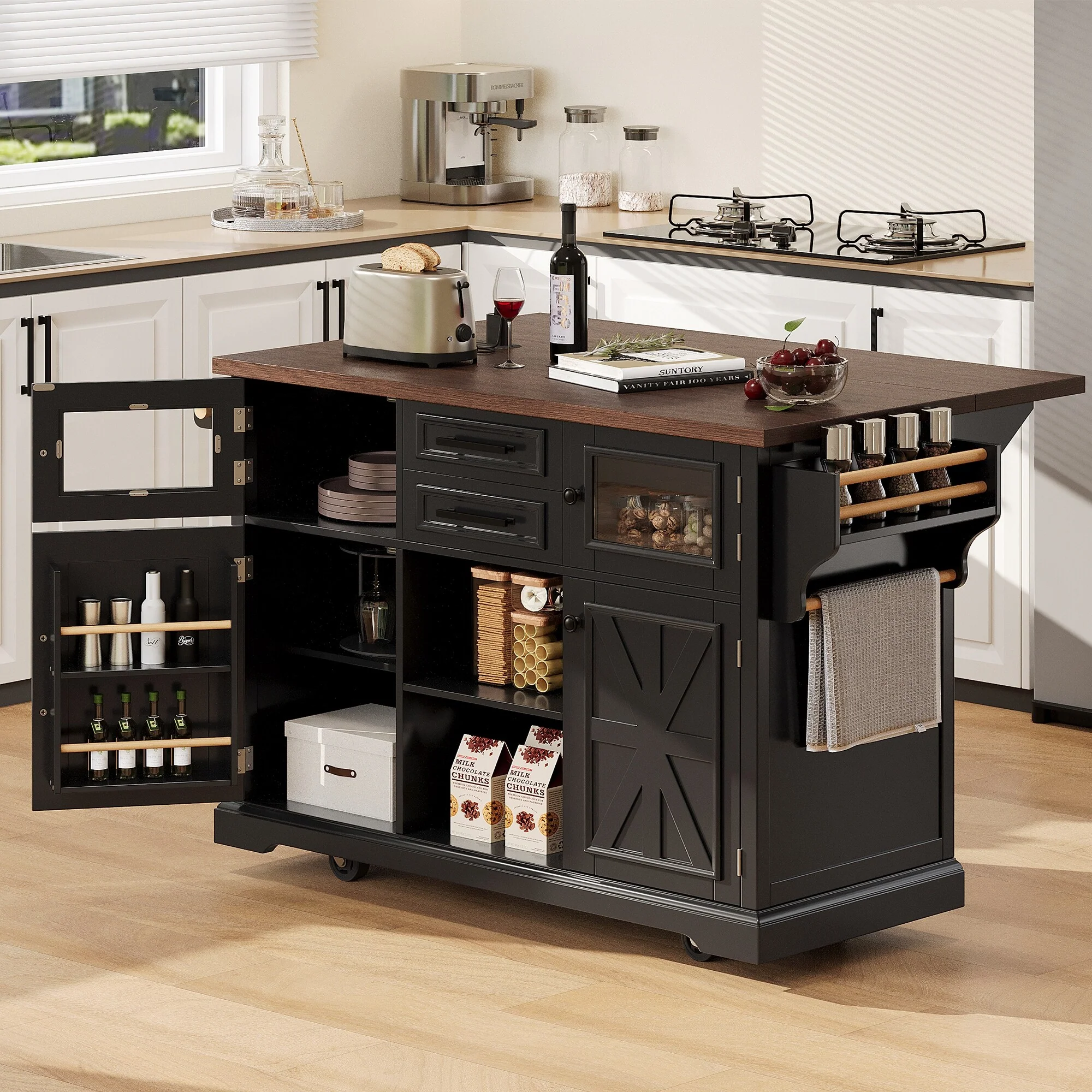 Kitchen Island With Drop Leaf Countertop(no include stool)
