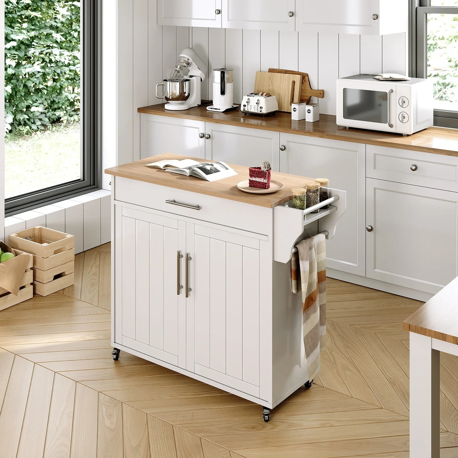 Americana Distressed Cottage Oak Kitchen Island With Drop Leaf