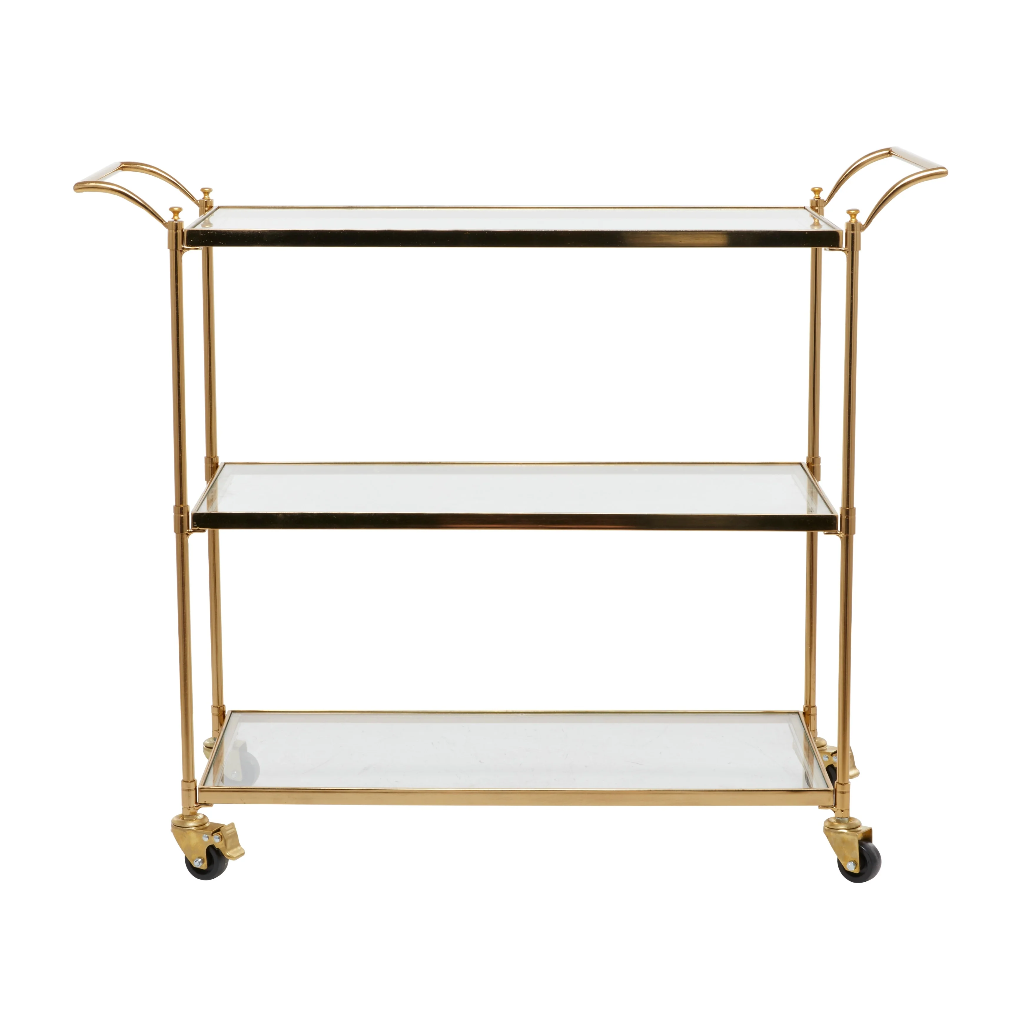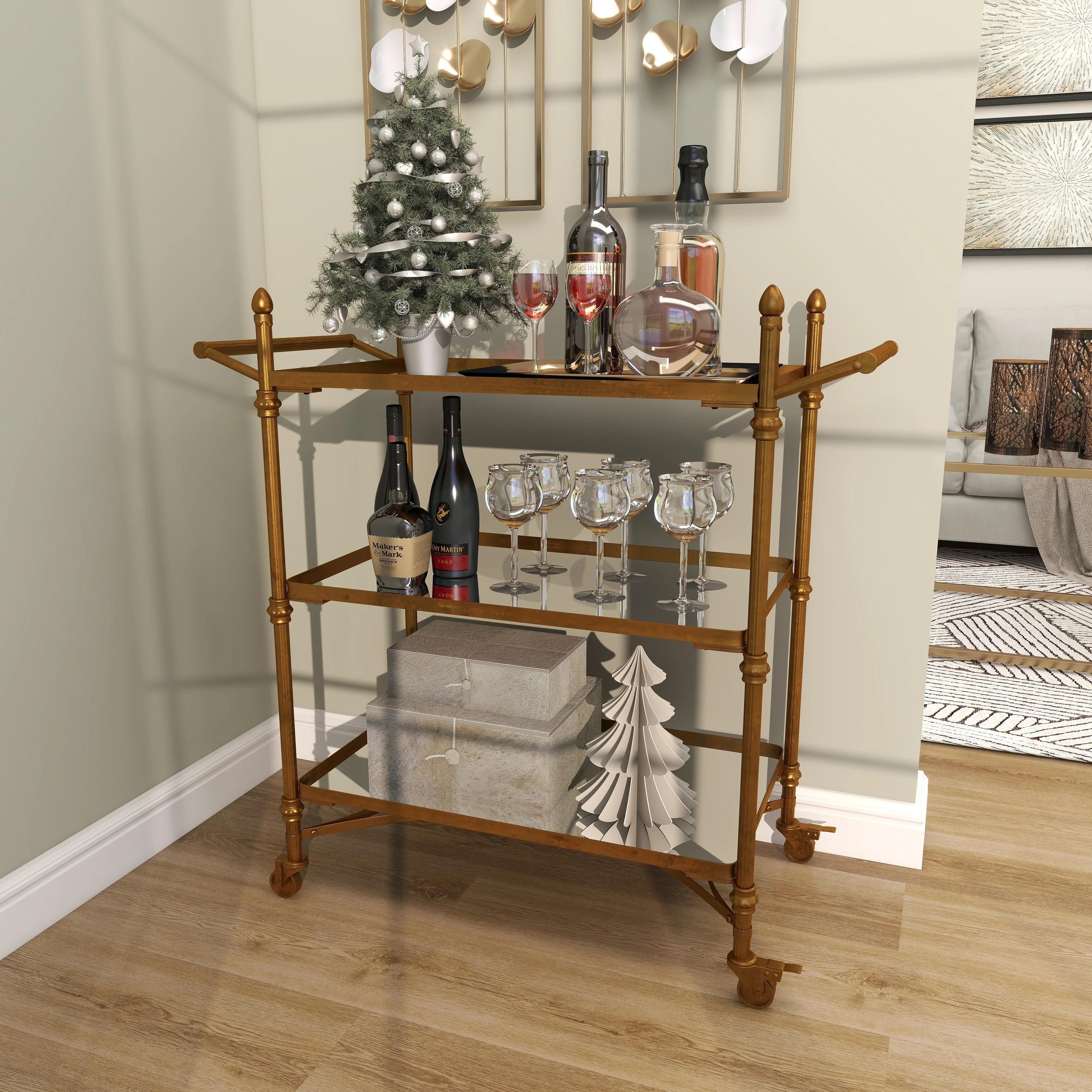 2 Tier Mirrored Top Beveled Serving Cart - 35.75 - Brass