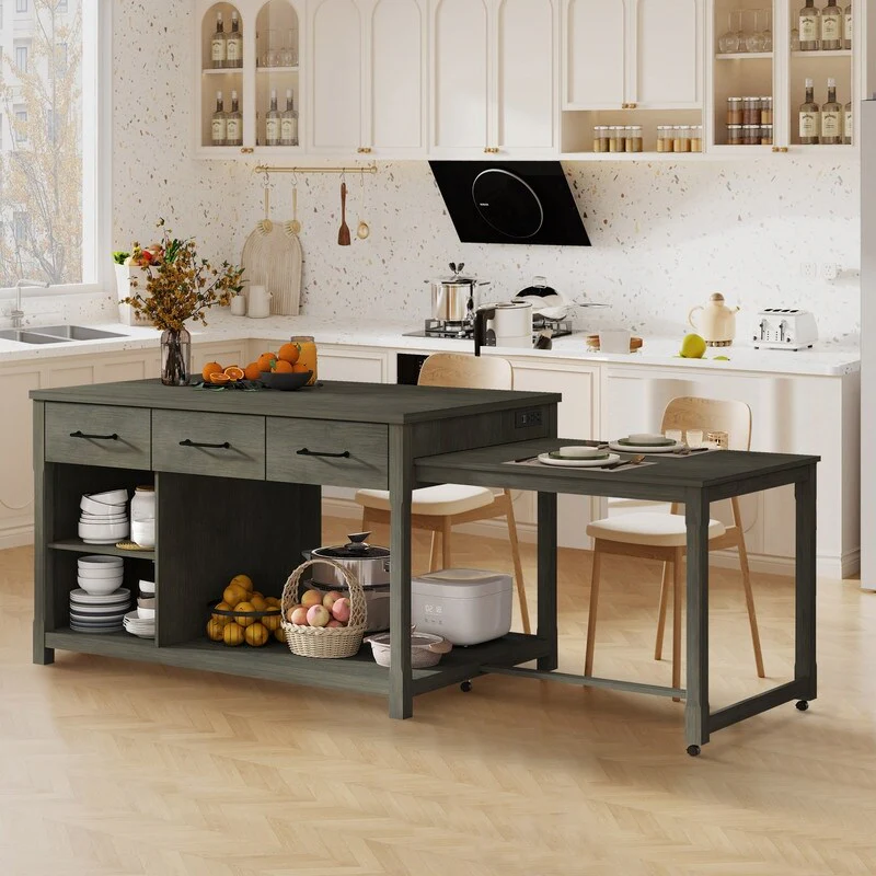 74.8 Kitchen Island with Extendable Dining Table & Power Outlet