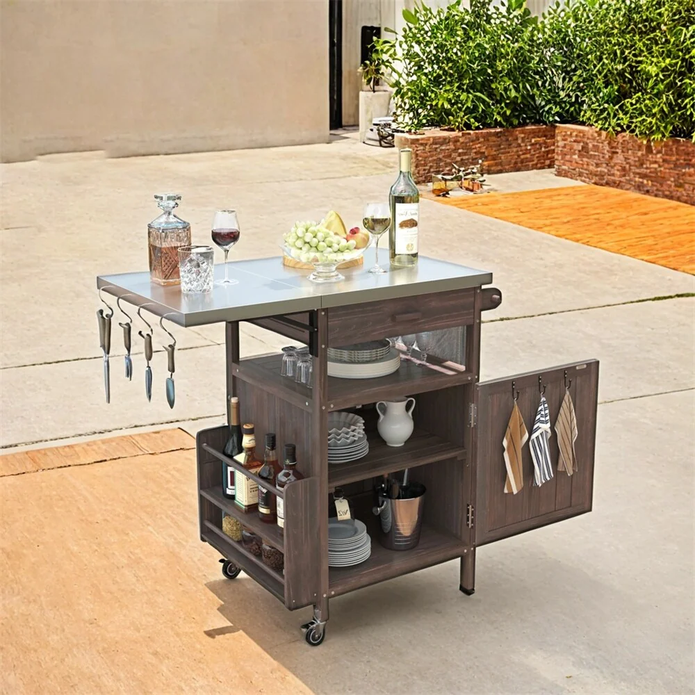 Portable Kitchen Cart Wood Top Kitchen Trolley with Drawers