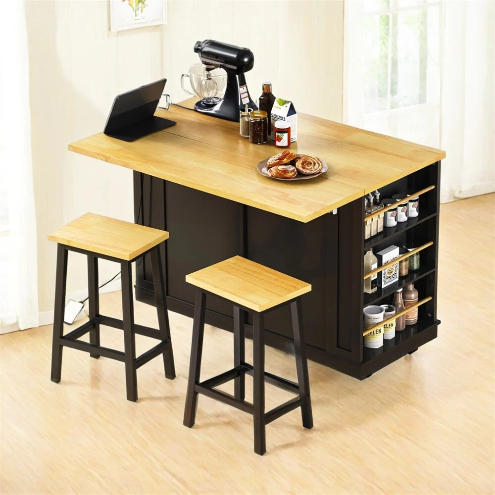 48 Kitchen Island w/2 Bar Stools,Kitchen Storage Cart on 5 Wheels