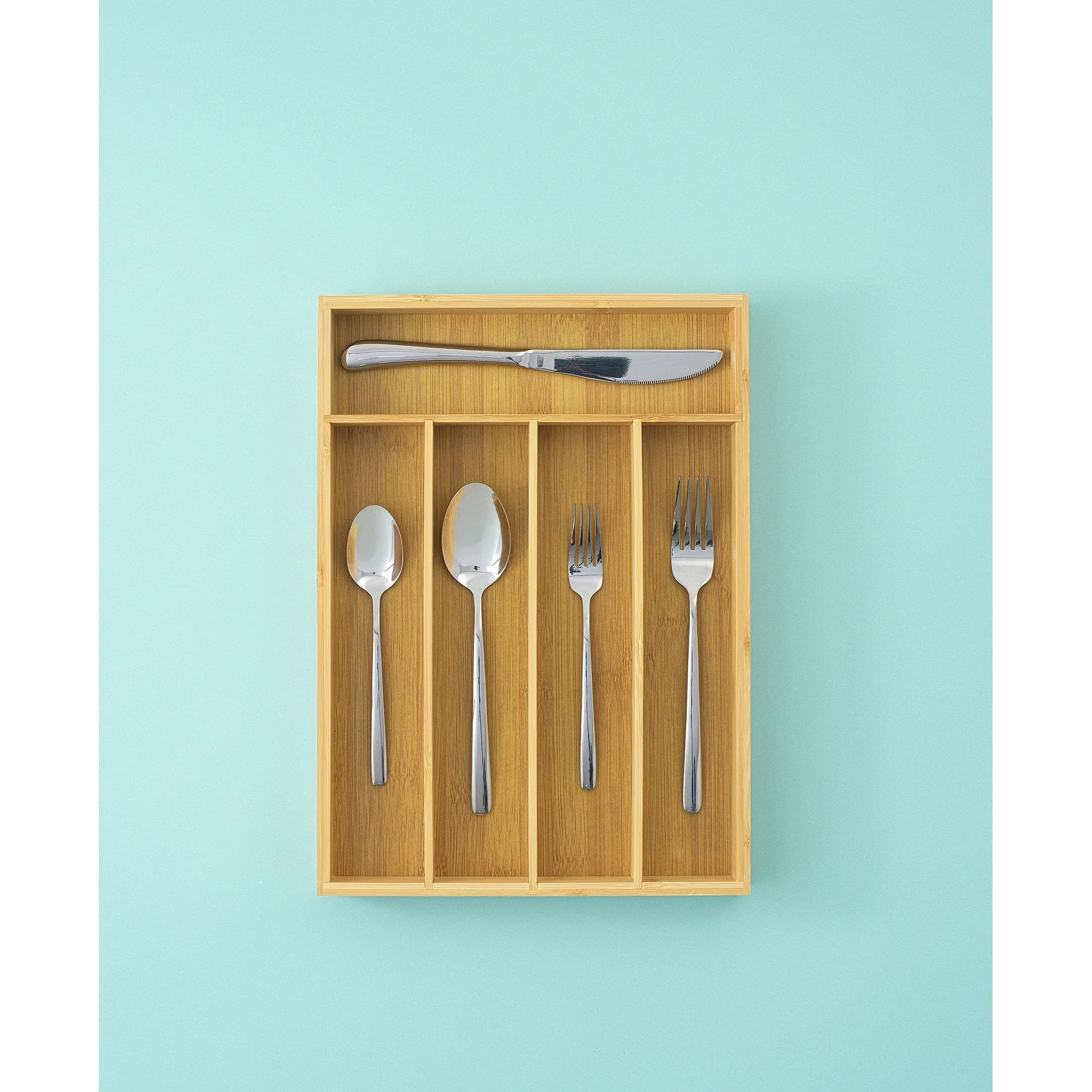 JoyJolt 5 Slot Bamboo Flatware Organizer