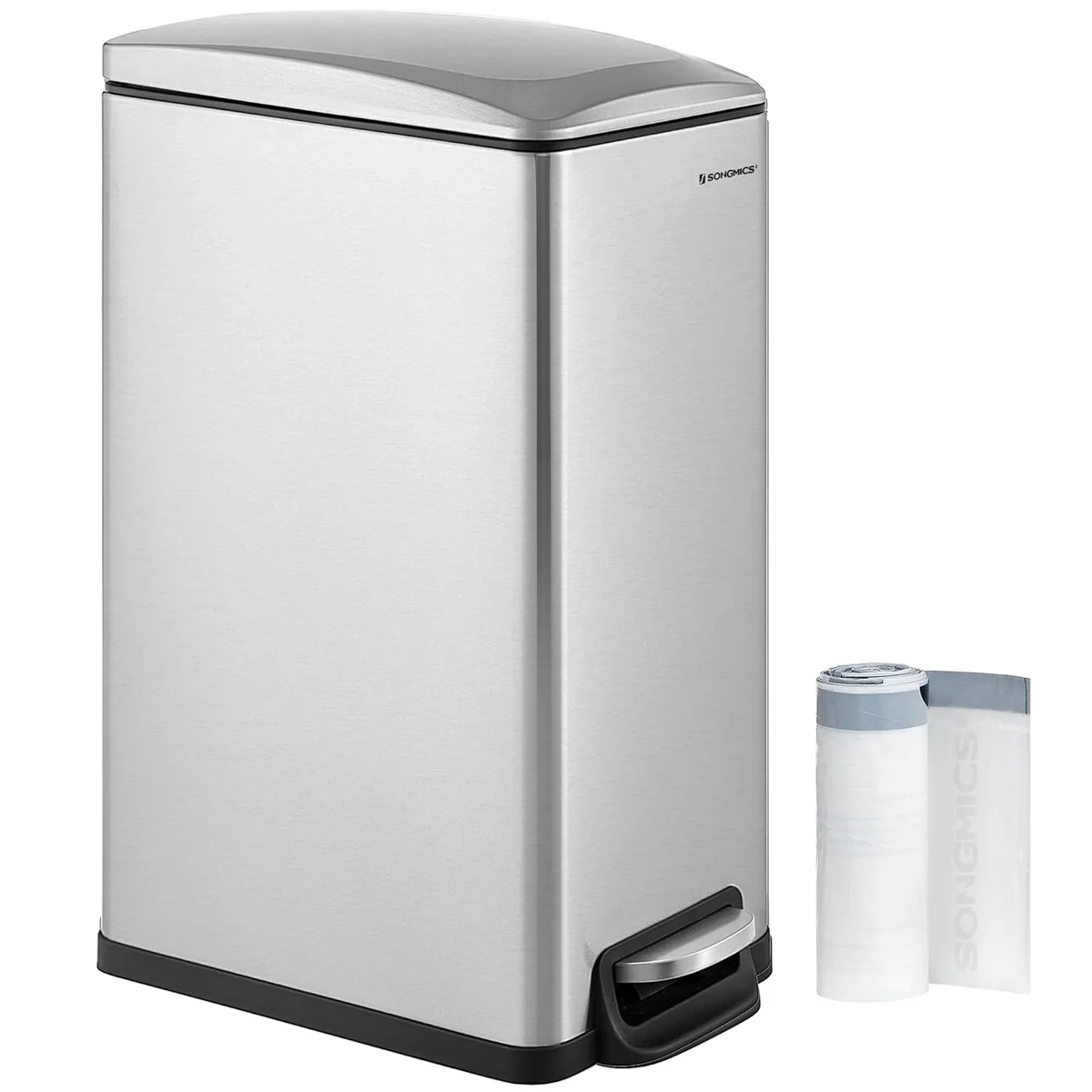 SONGMICS 12.7 Gallon Garbage Can for Narrow Spaces, Silver