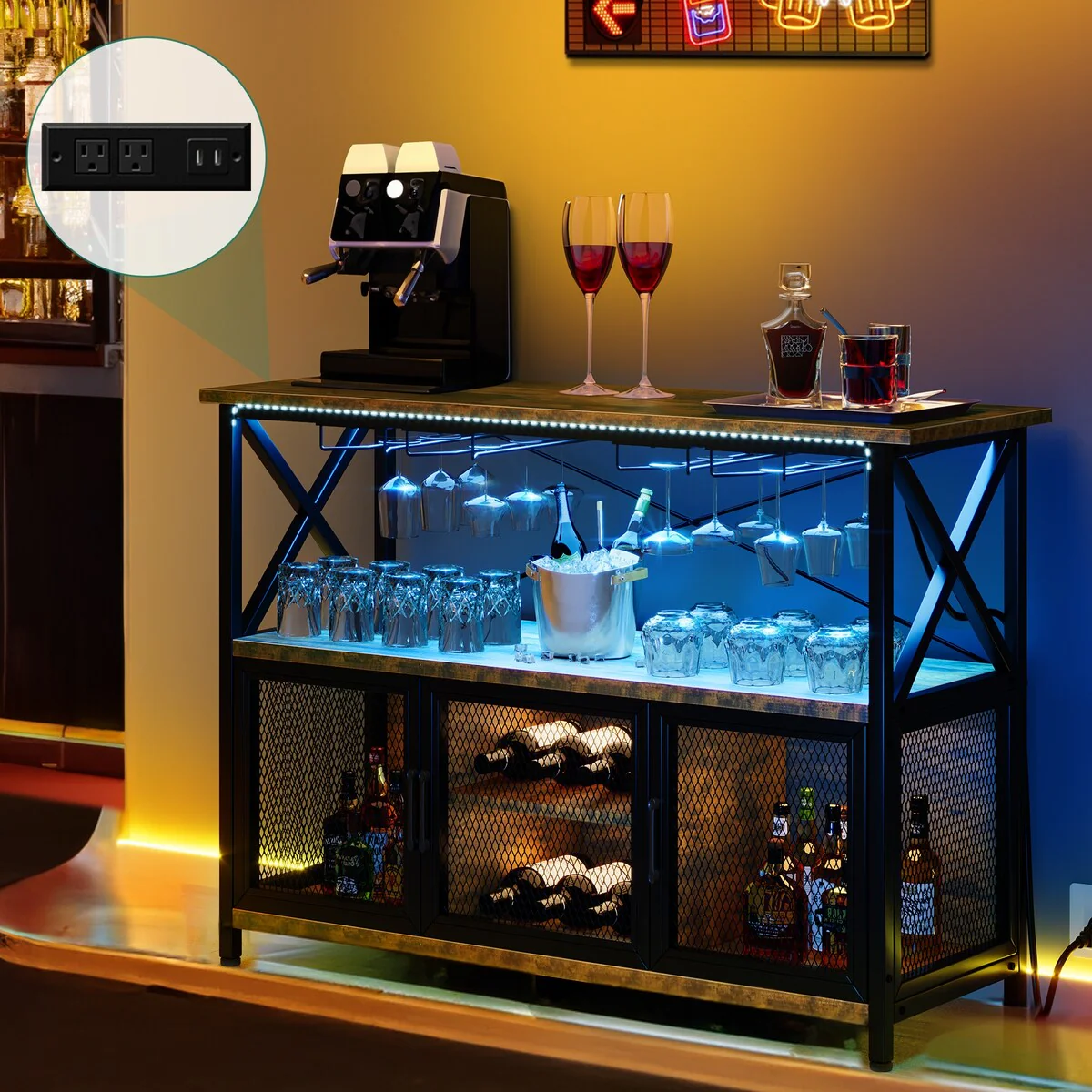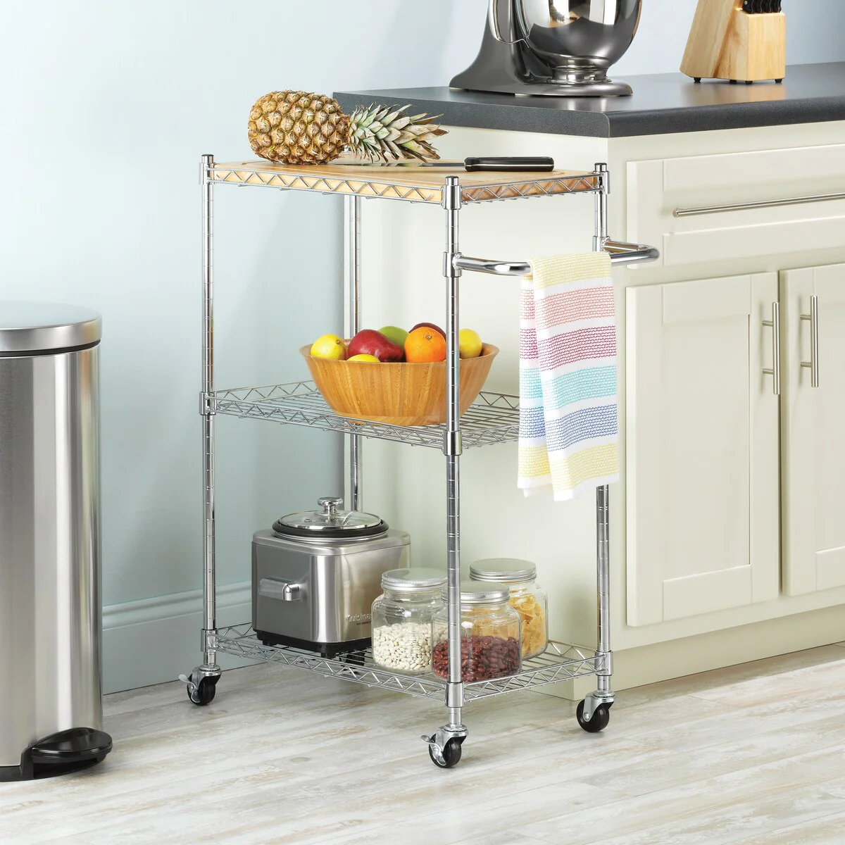 Whitmor Supreme Kitchen and Microwave Cart - Wood & Chrome