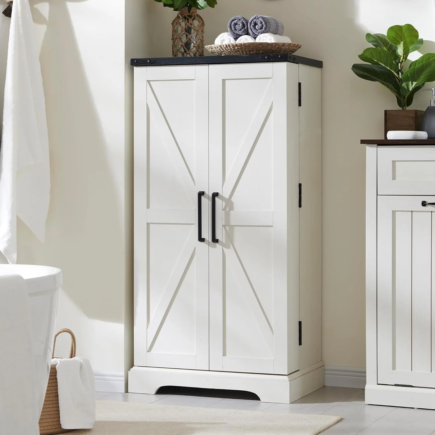 47 Farmhouse Kitchen Pantry, Storage Cabinet with Barn Doors - N/A