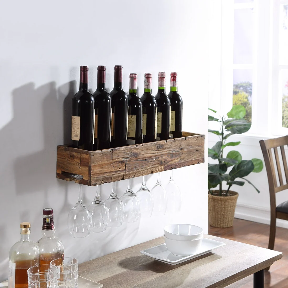 24 Inch Floating Wine Shelf With Glass Holder