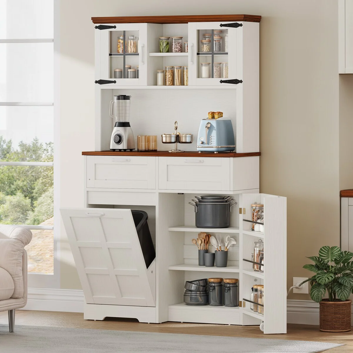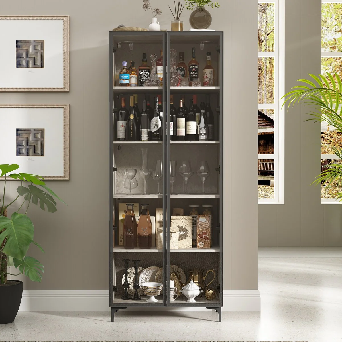 Kitchen Pantry Cabinets 5-Tier Tall Storage Cabinet with Glass Doors
