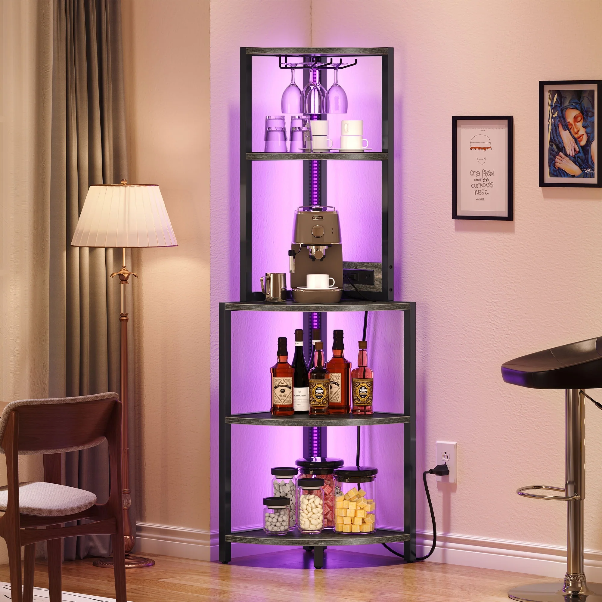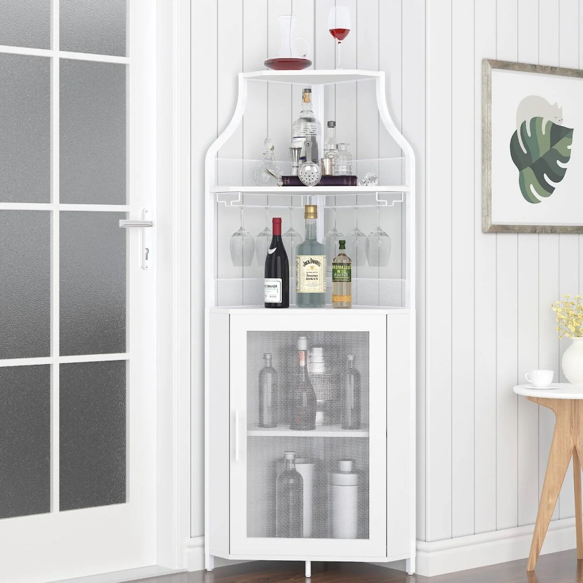White Corner Wine Cabinet with Detachable Wine Rack - N/A