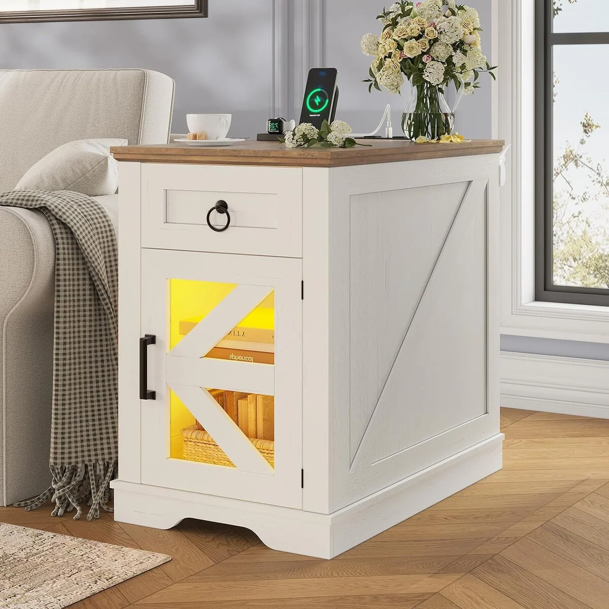 Farmhouse LED Nightstand End Table Side Table 1 Drawer