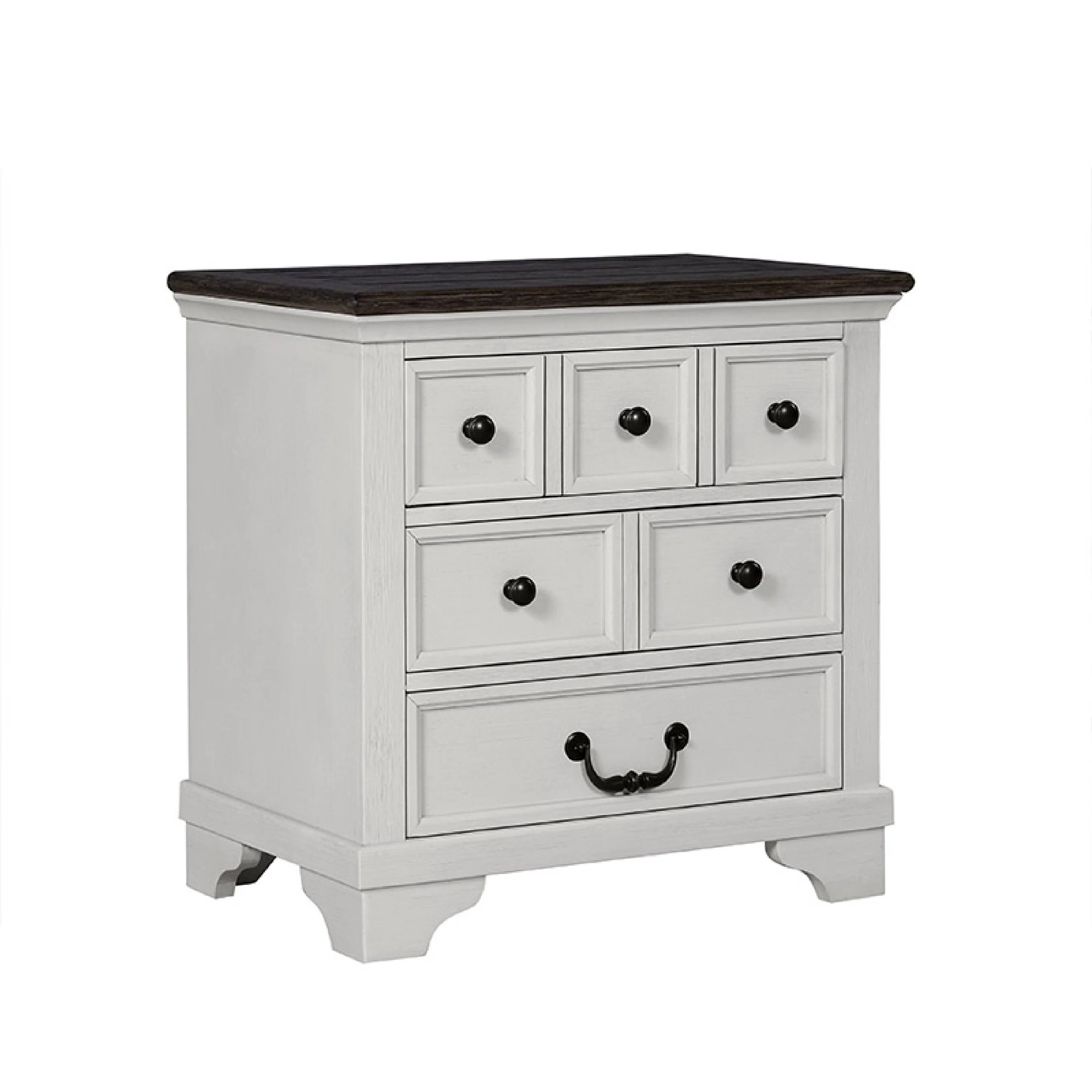 Hamps Nightstand, USB A-C, 3 Drawers, White and Dark Brown, 28 Inch