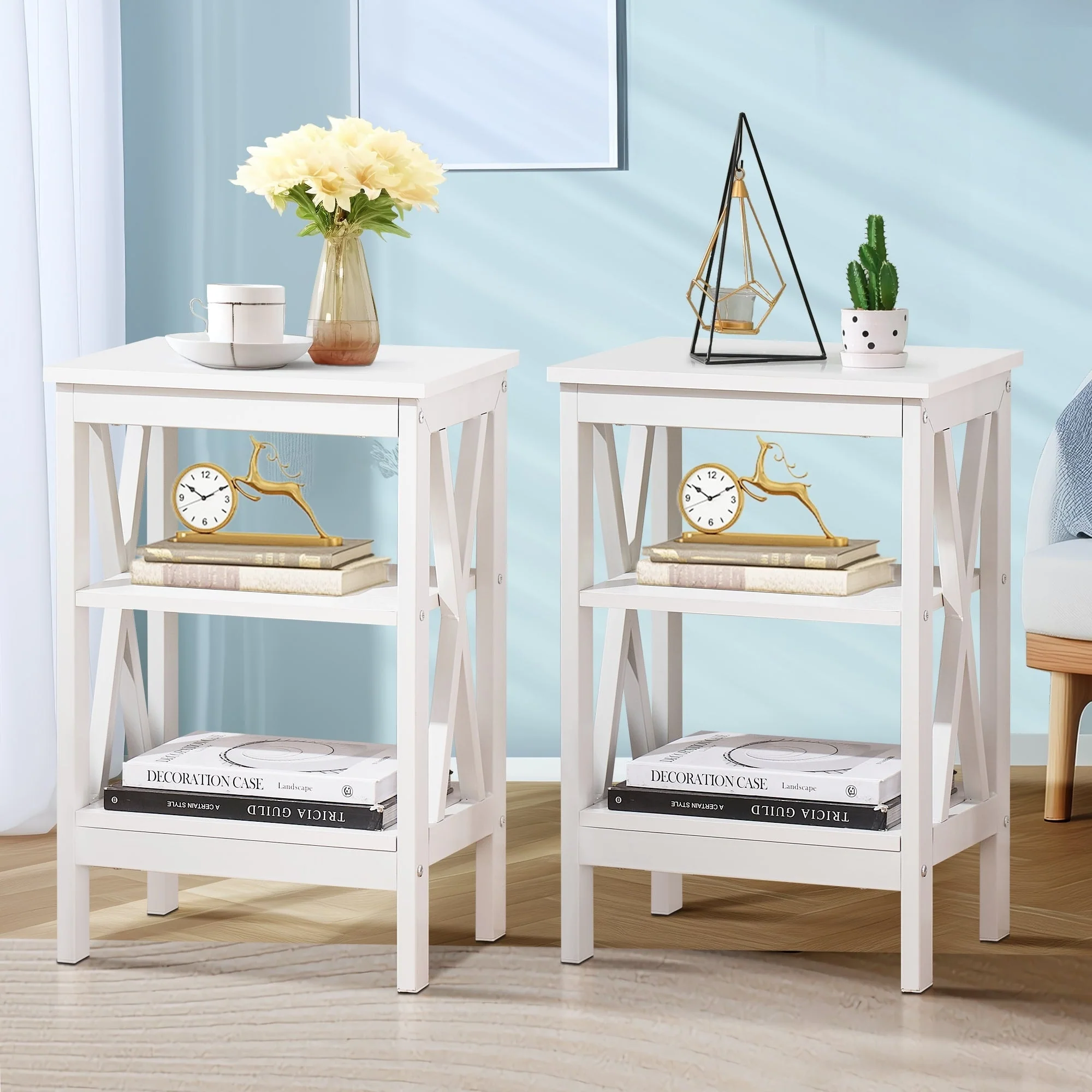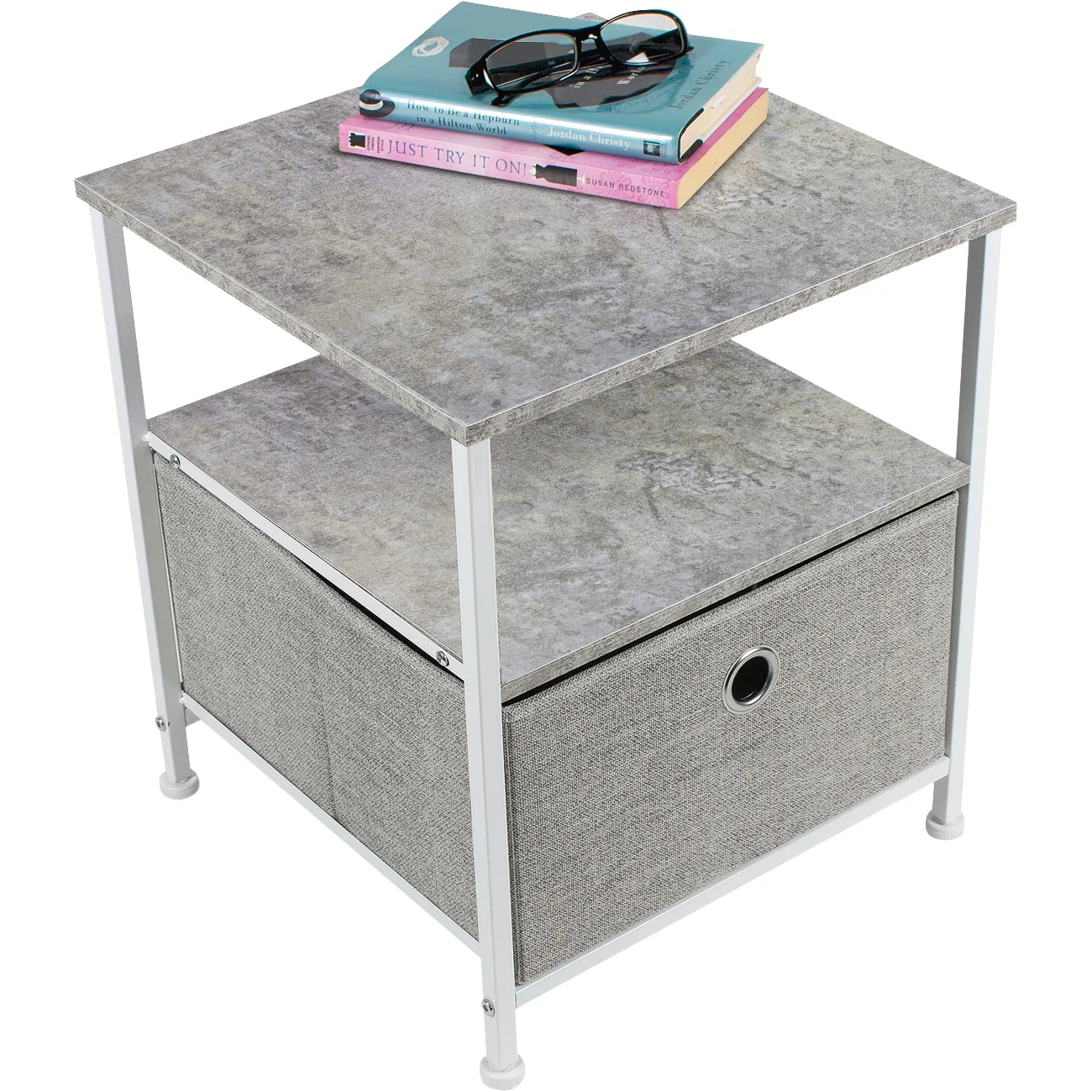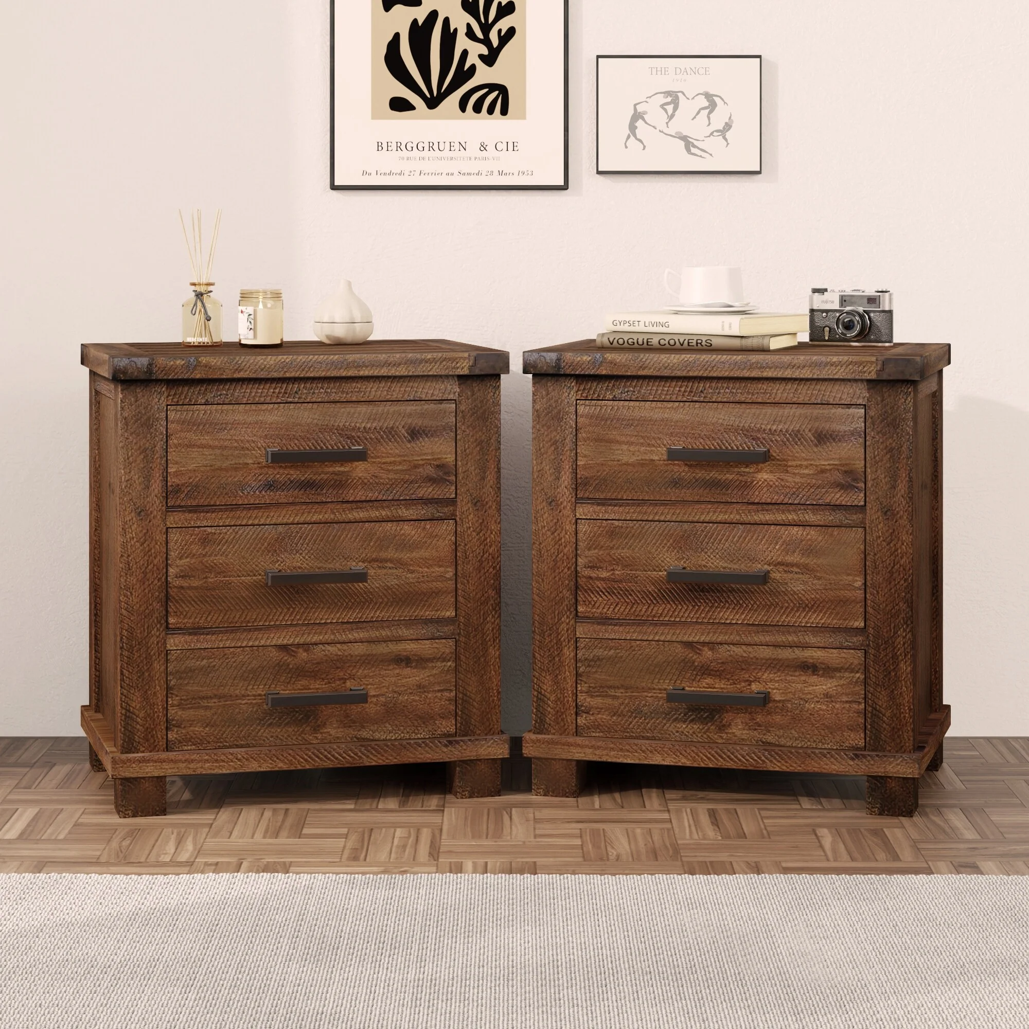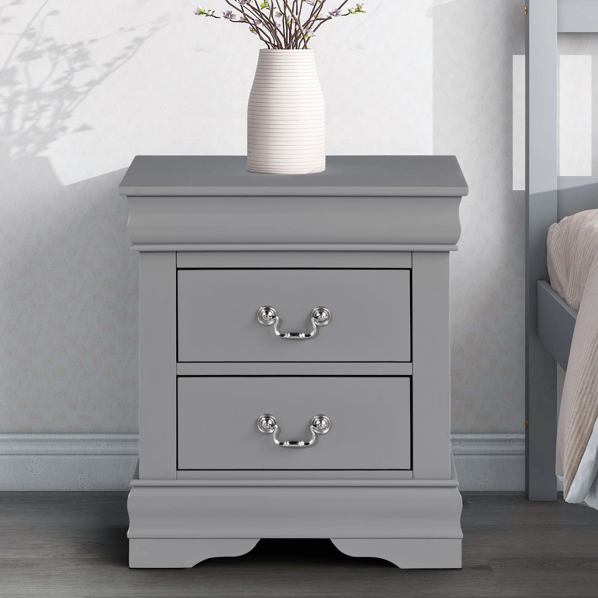 Nightstand with Charging Station and 2 Solid Wood Drawers