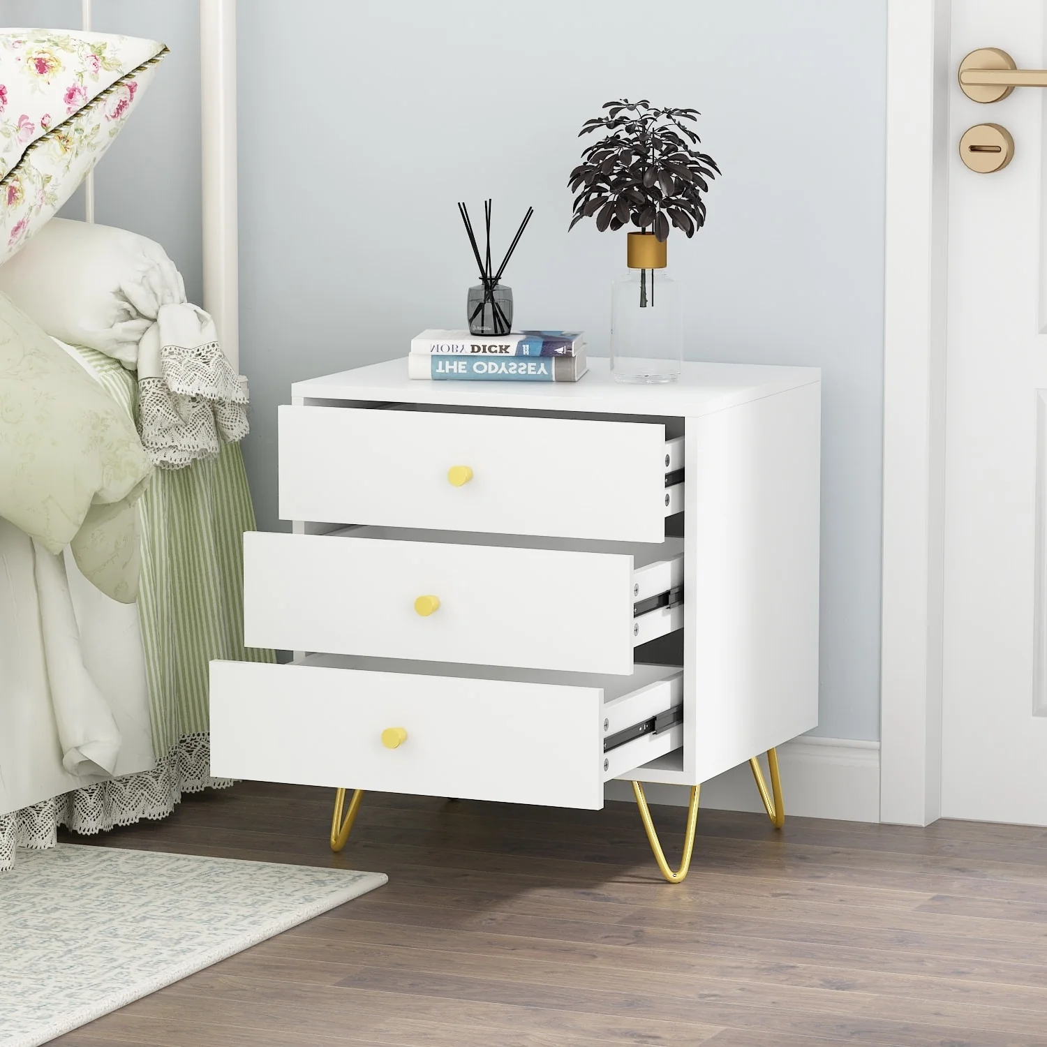3-Drawer Nightstand, White Farmhouse Bedside Table for Bedroom