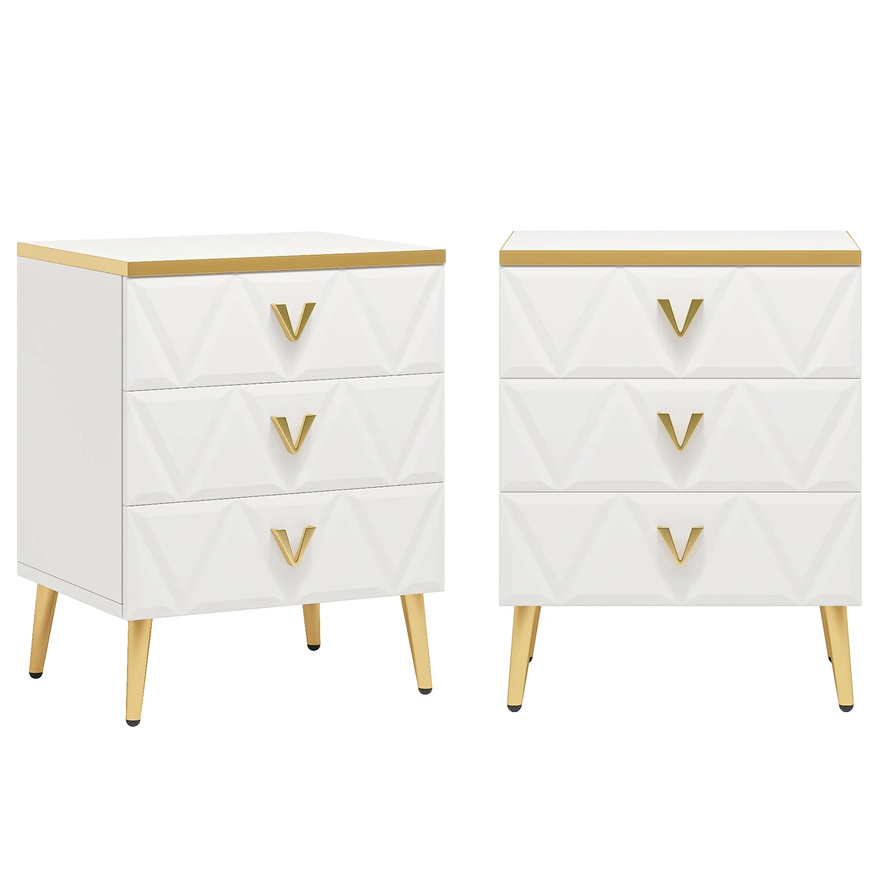 21.6'' Tall 3 - Drawer Nightstand White/Grey/Black(1 Piece)