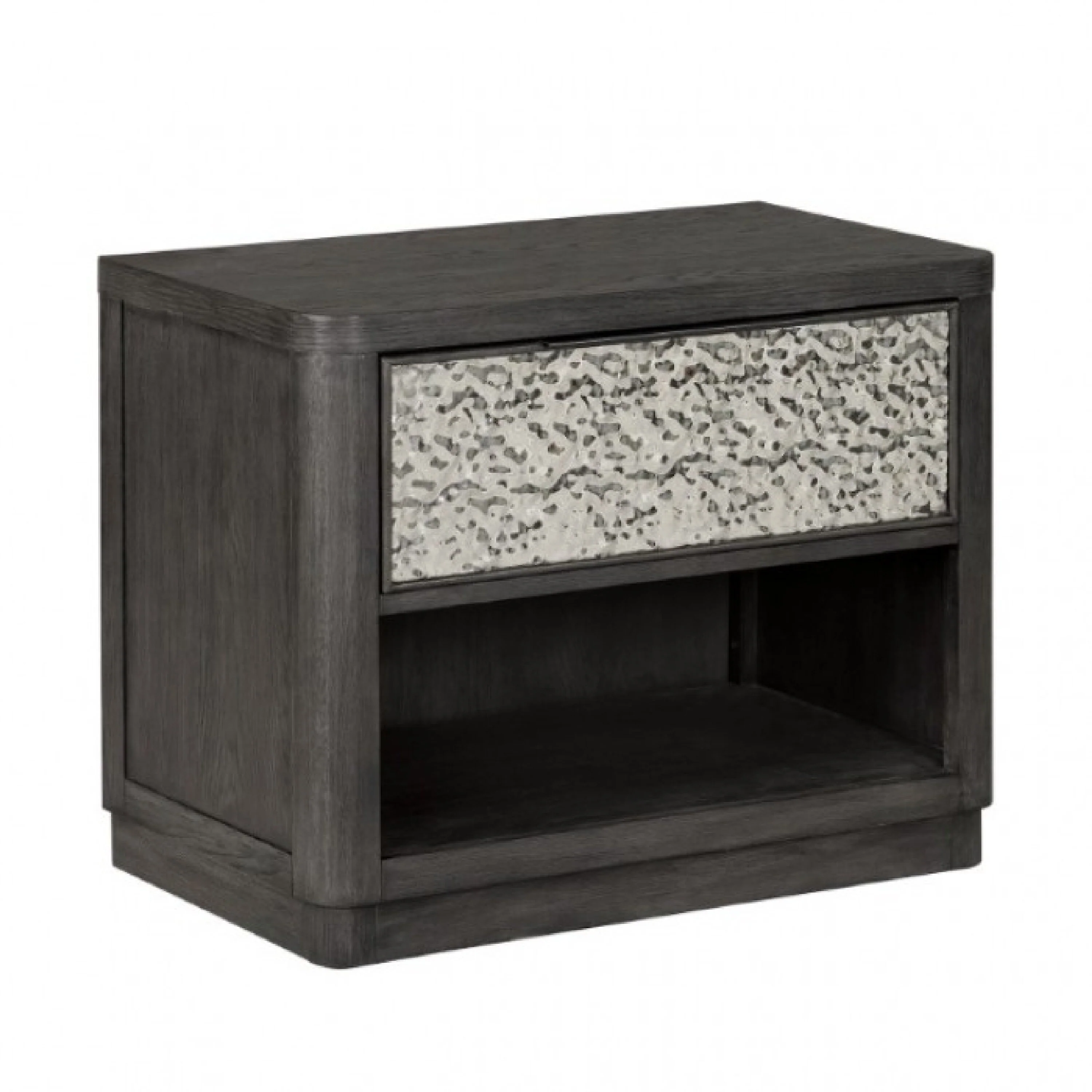 Zoko Nightstand Table with 2 USB Ports, Metal Accents, Ash Gray Wood