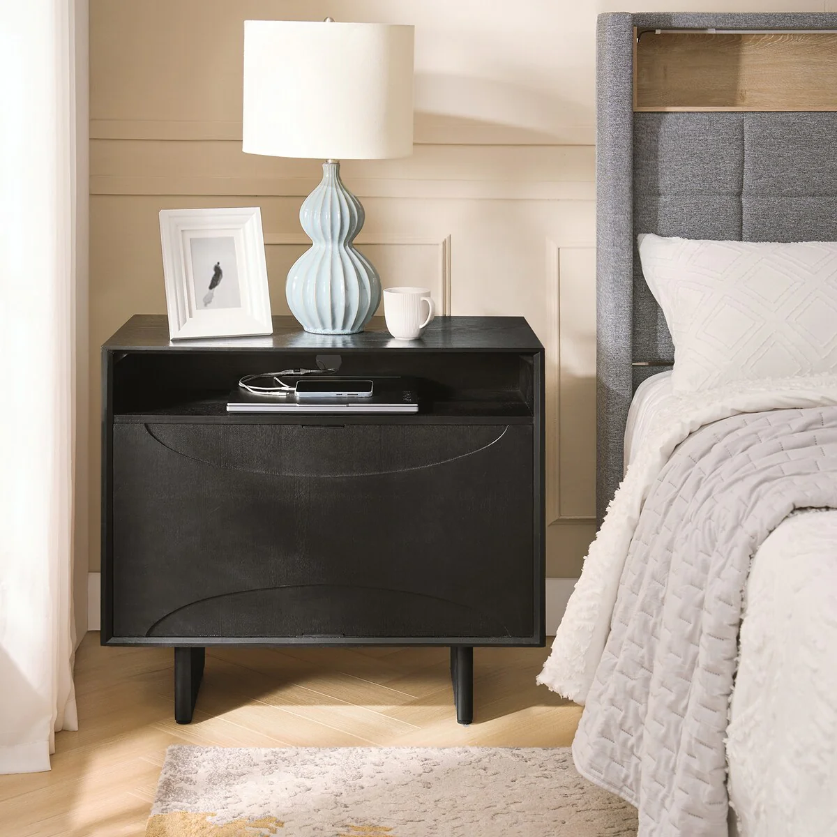 Nightstand with Storage Cabinet & Solid Wood Tabletop