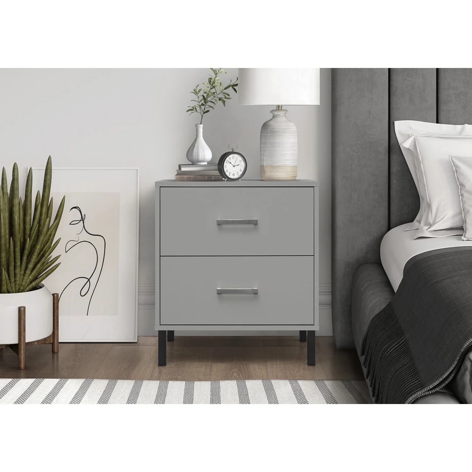 Clihome Modern 2-Drawer Storage Nightstand