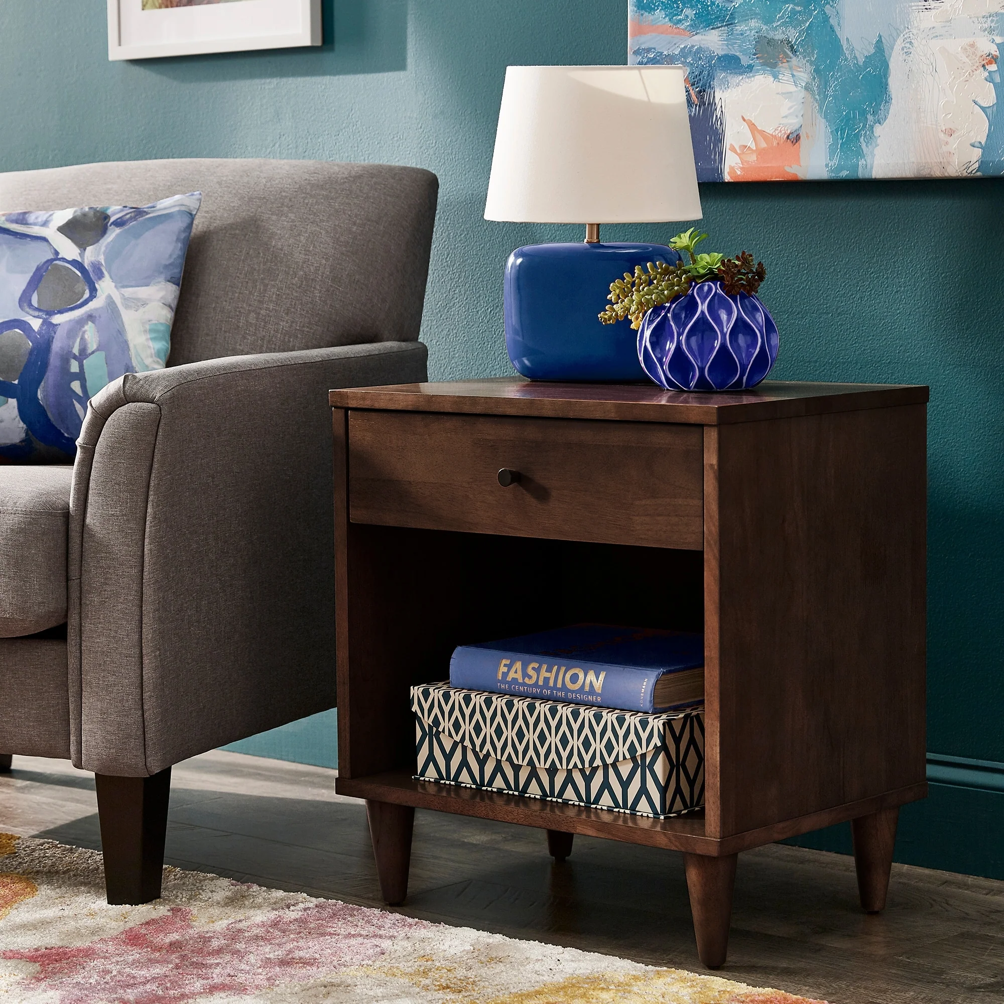 Frey 1-Drawer Brown Finish Wood Nightstand by iNSPIRE Q Modern