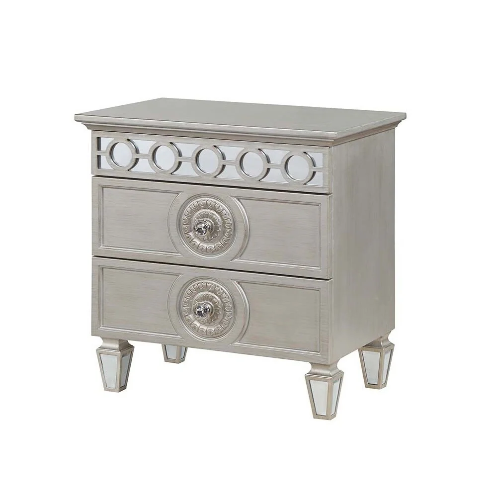 2 Drawers Nightstand with Mirror Inlay Trim
