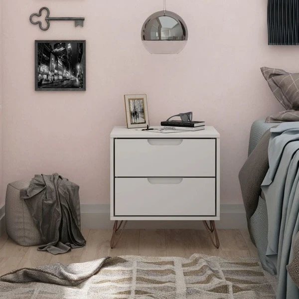 DH BASIC Contemporary 2-Drawer Nightstand with Shelf by Denhour