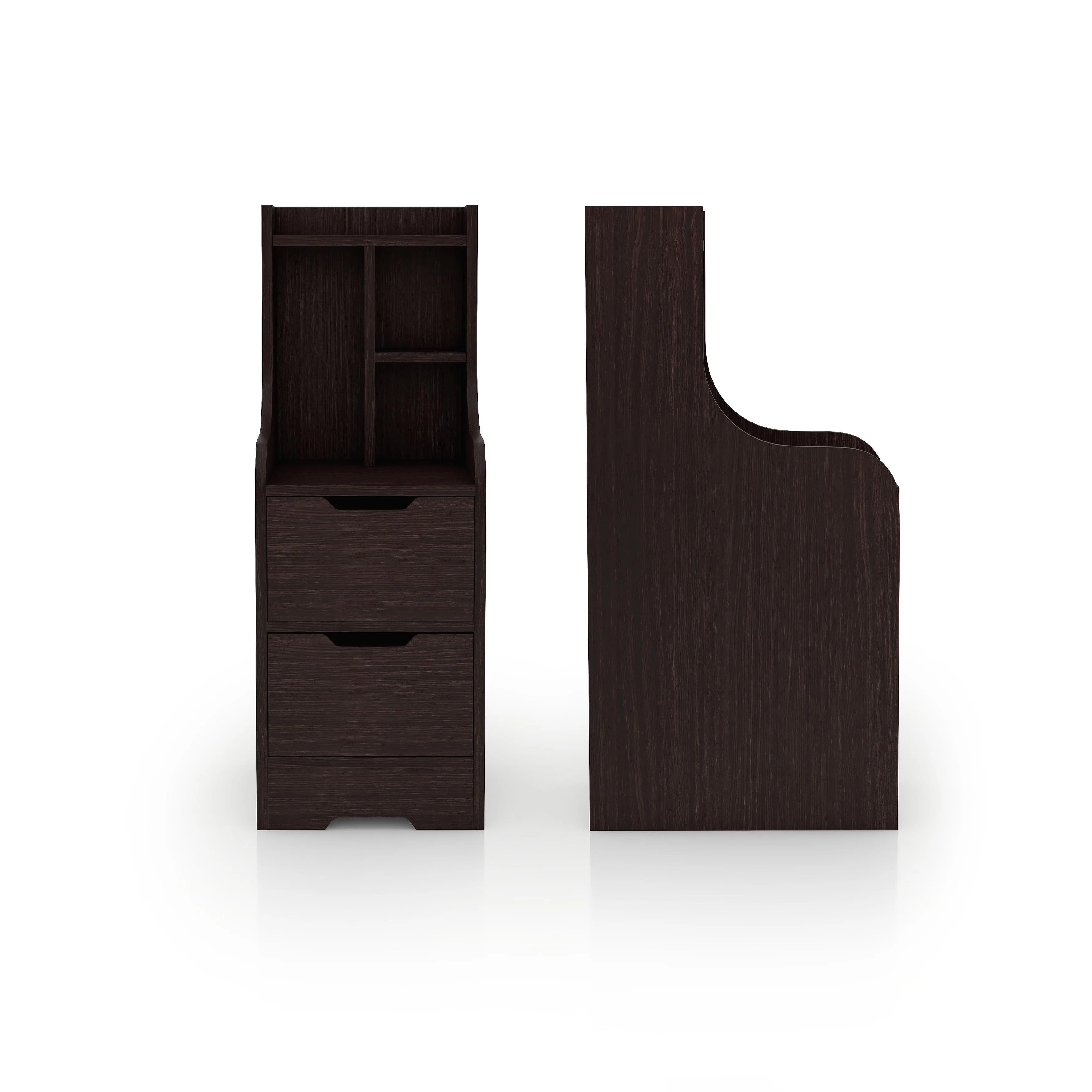 Night Stand With Bookshelf, Night Stand With 2 Storage Drawers