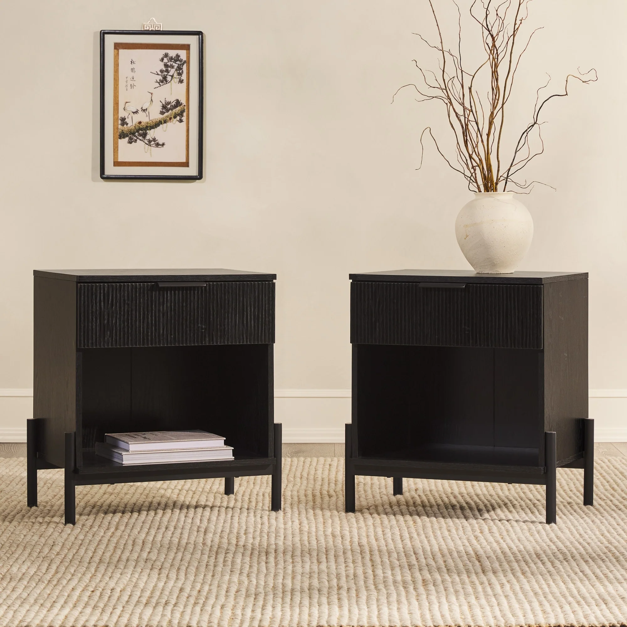Middlebrook Designs Modern Fluted-Drawer Nightstand (Set of 2)