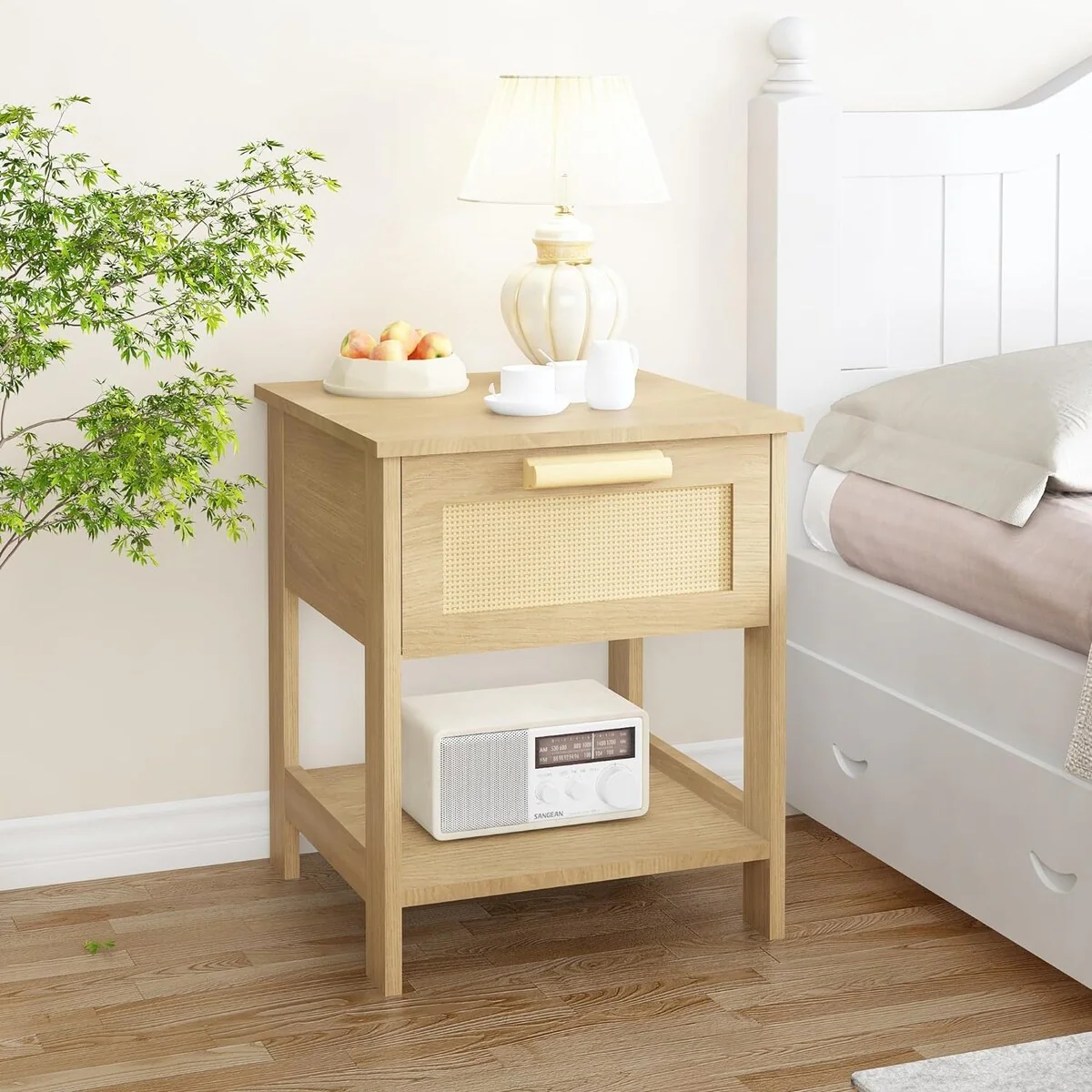 Rattan Nightstand with 3 Drawers