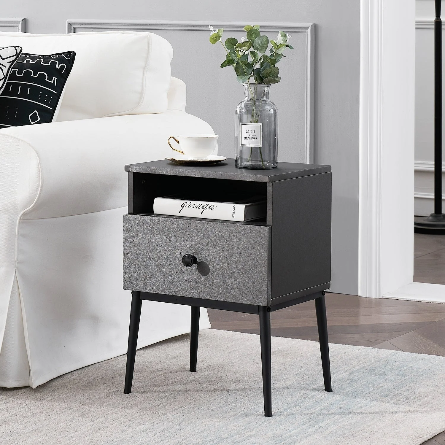 VECELO Modern 1-Drawer Wood Nightstand