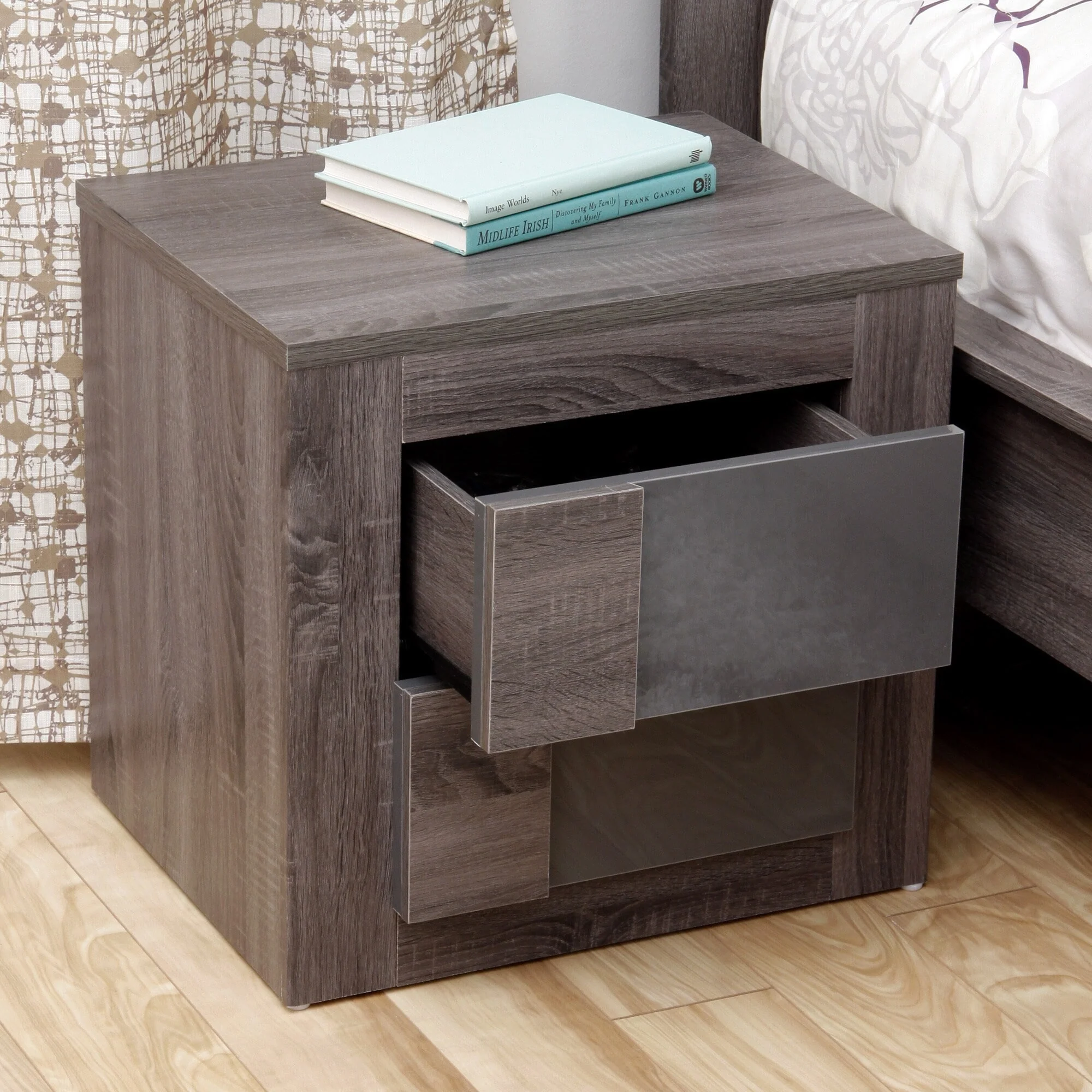 2 Drawers Nightstand with Metallic Acrylic Drawer Front