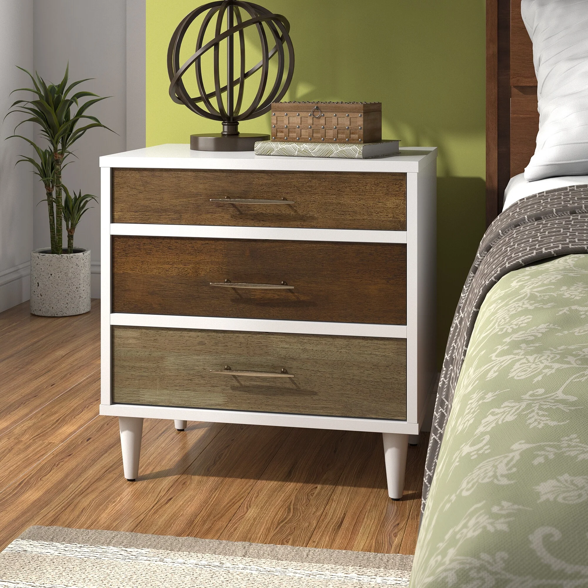 Ghent White and Natural Finish 3-Drawer Nightstand