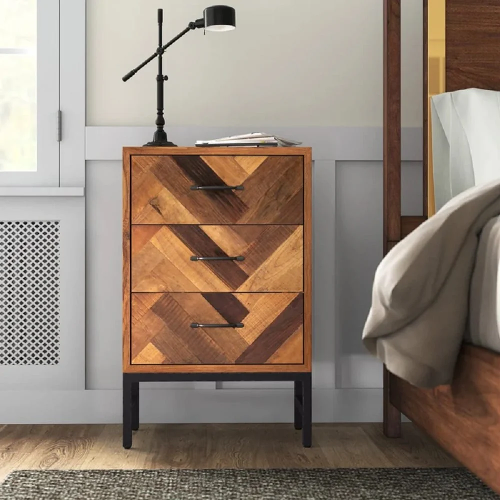 U STYLE 3-Drawer Nightstand Storage Wood Cabinet