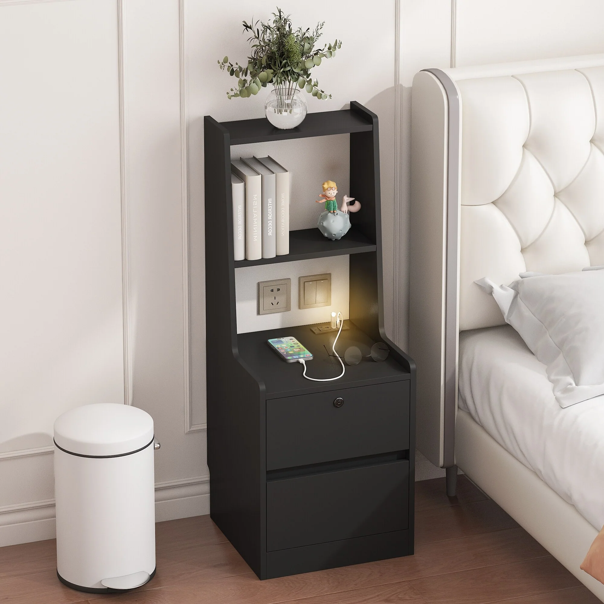 LED 3-Drawer Nightstand With Charging Station and Reading Light