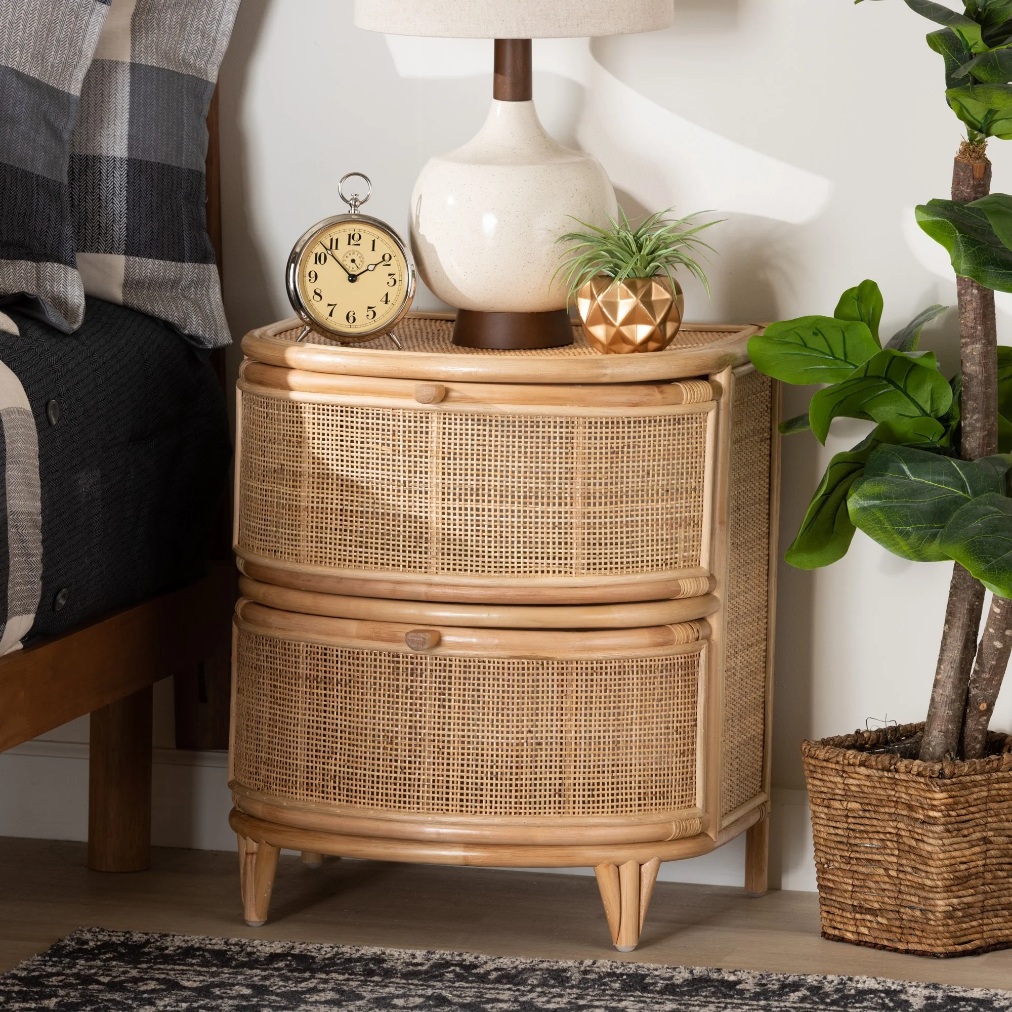Oleta Modern Bohemian Natural Brown Rattan 2-Drawer Nightstand
