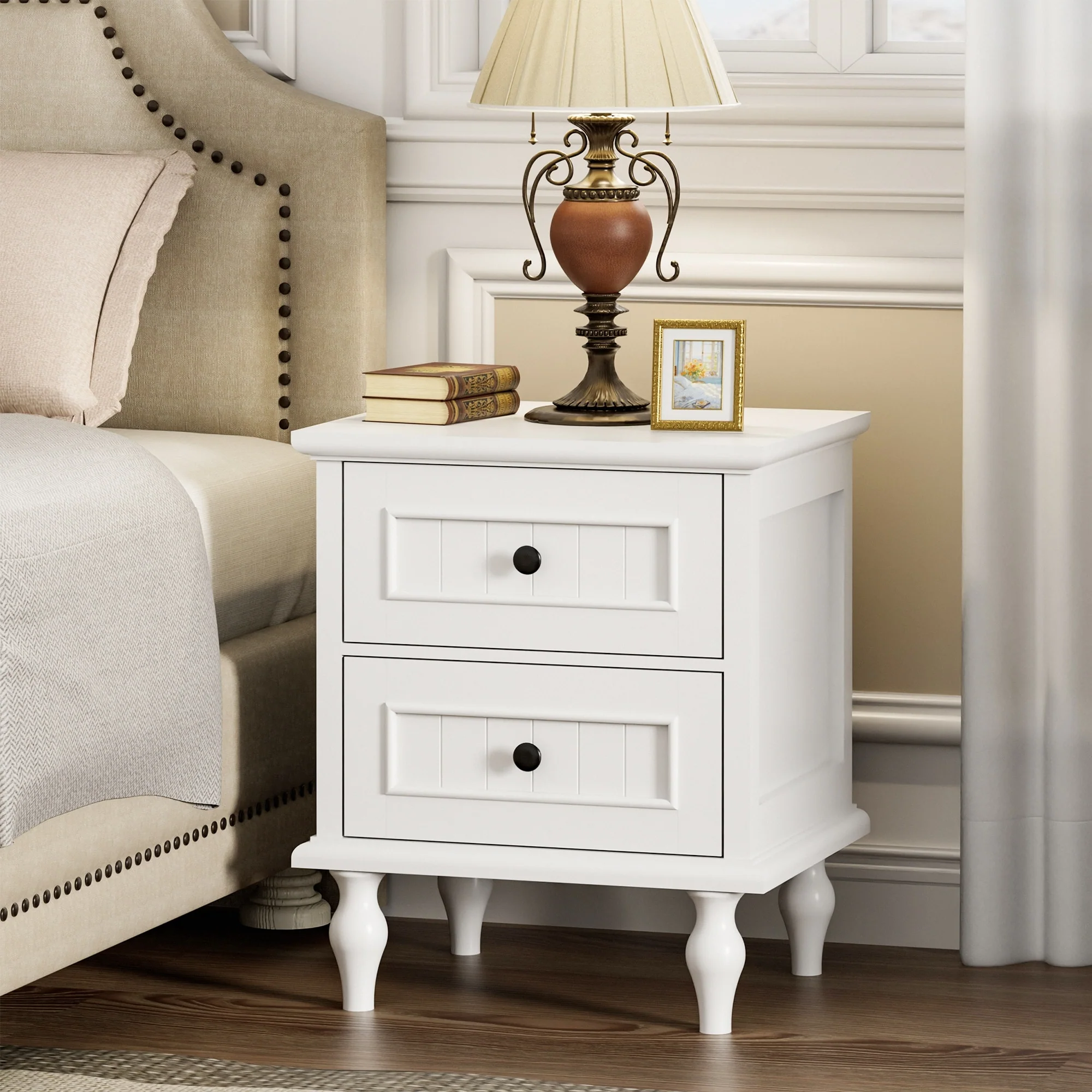 Nightstand End Table with 2 Drawers