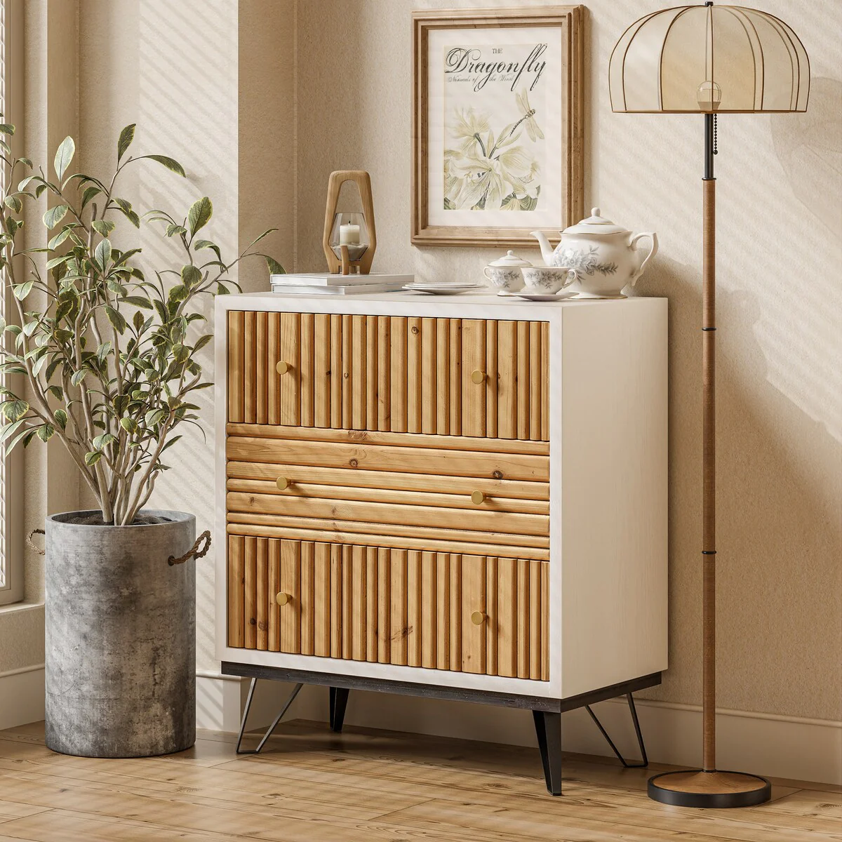 23.6'' Tall 3 Drawer Nightstand End Table Beside Gold Handle
