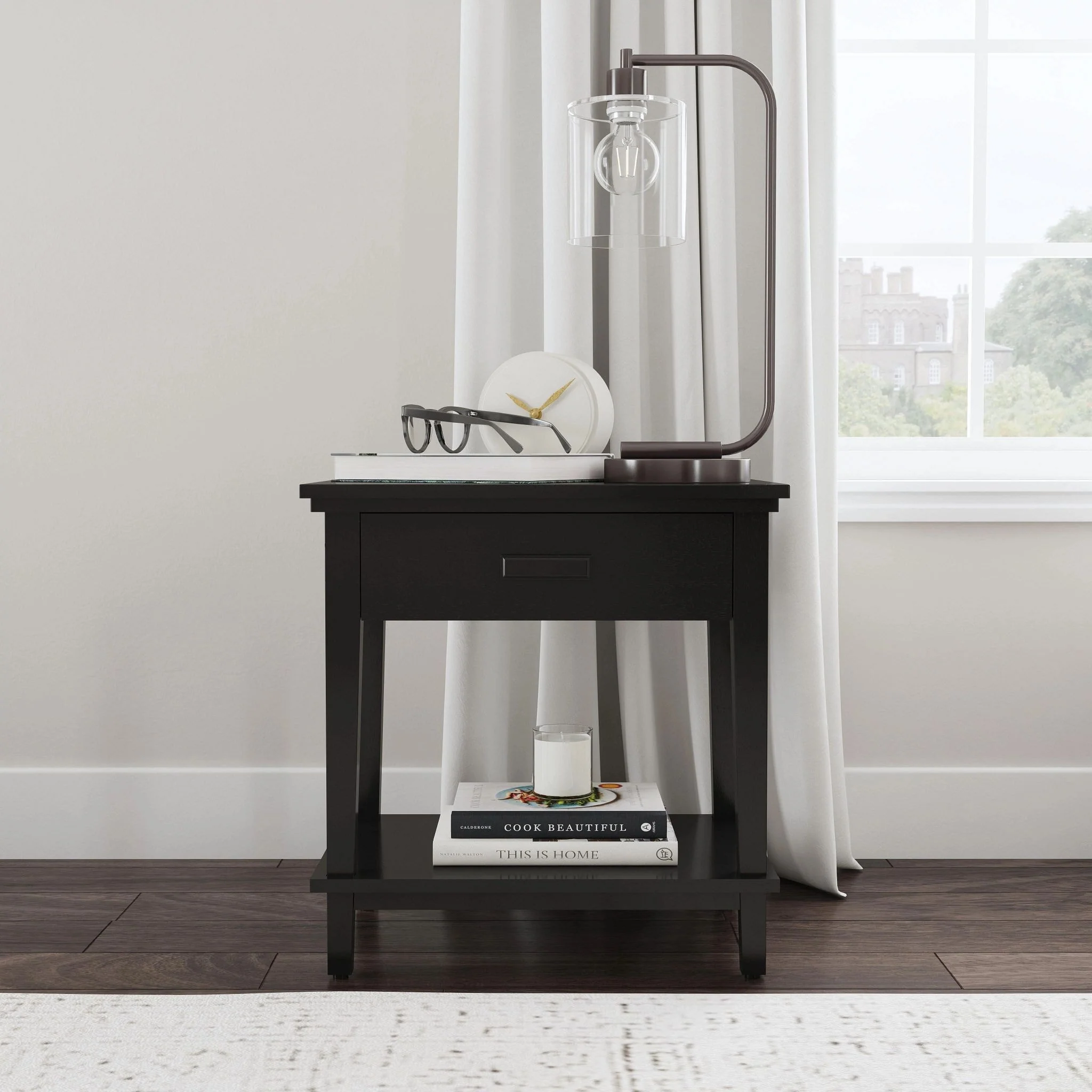 Homestyles Oak Park Black Wood Nightstand