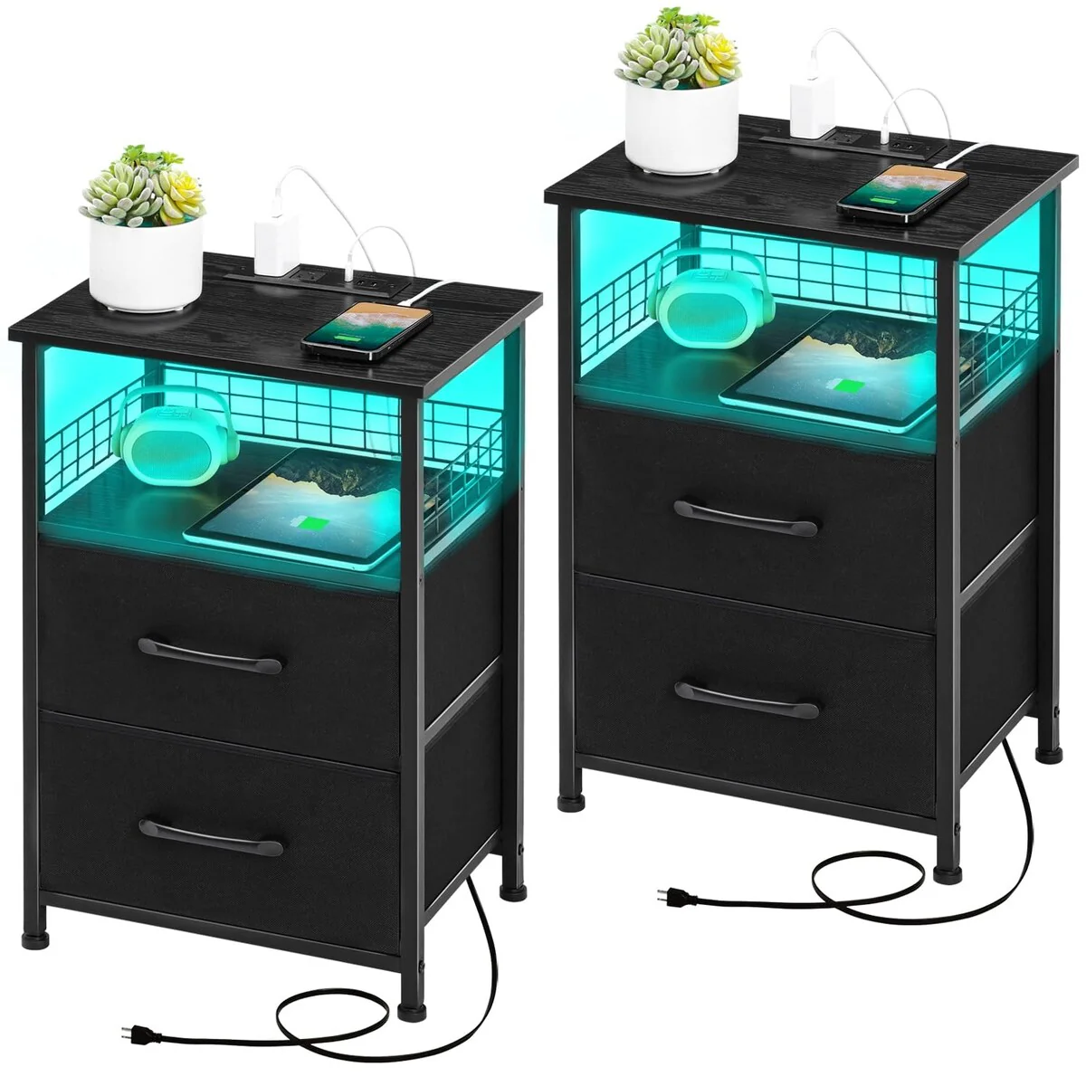 3 Drawers Wooden Nightstand with USB and Power Outlet