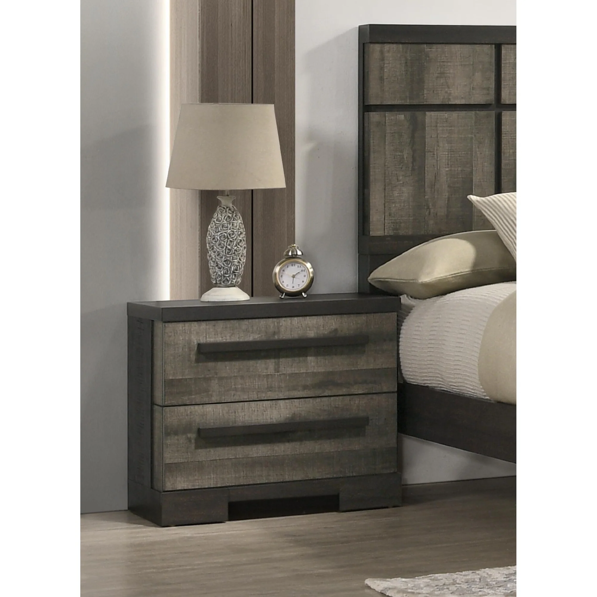 1pc Contemporary 2-Drawer Nightstand Wooden Bedroom Furniture