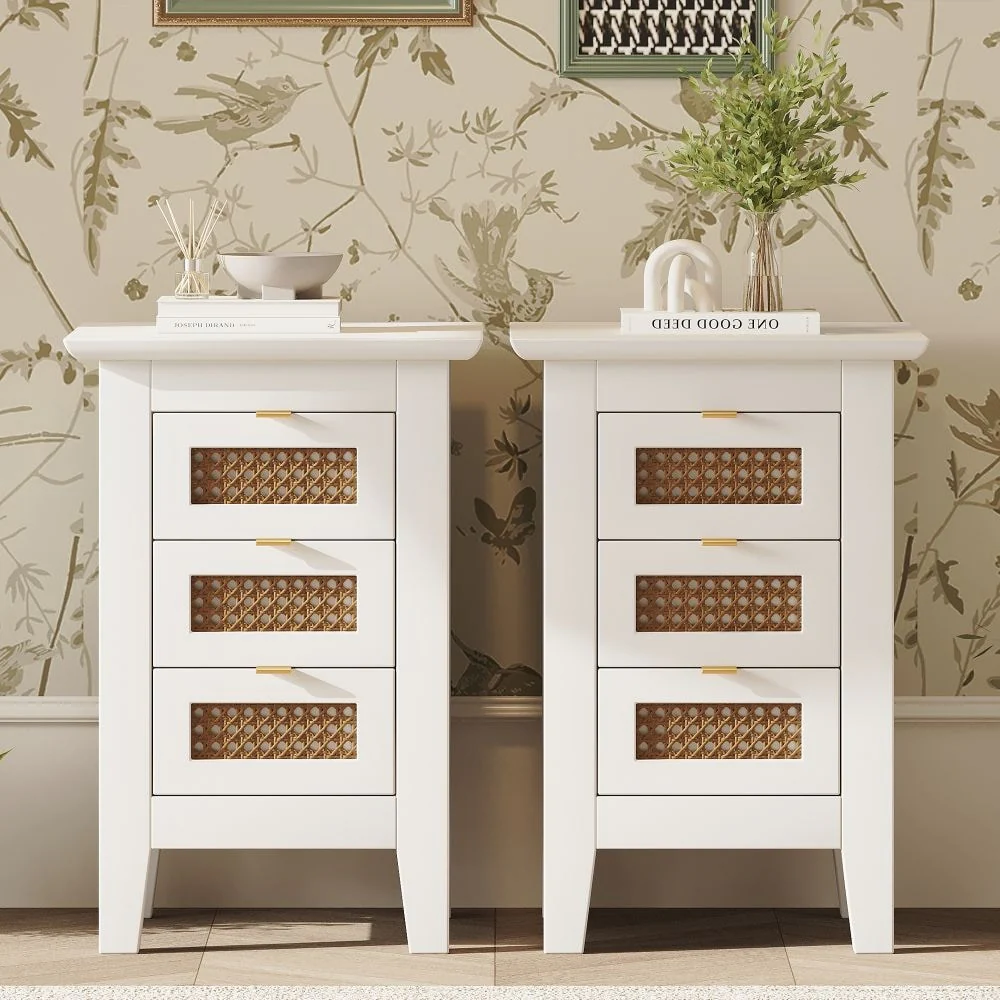 Rattan End Table with Drawer Modern Nightstand
