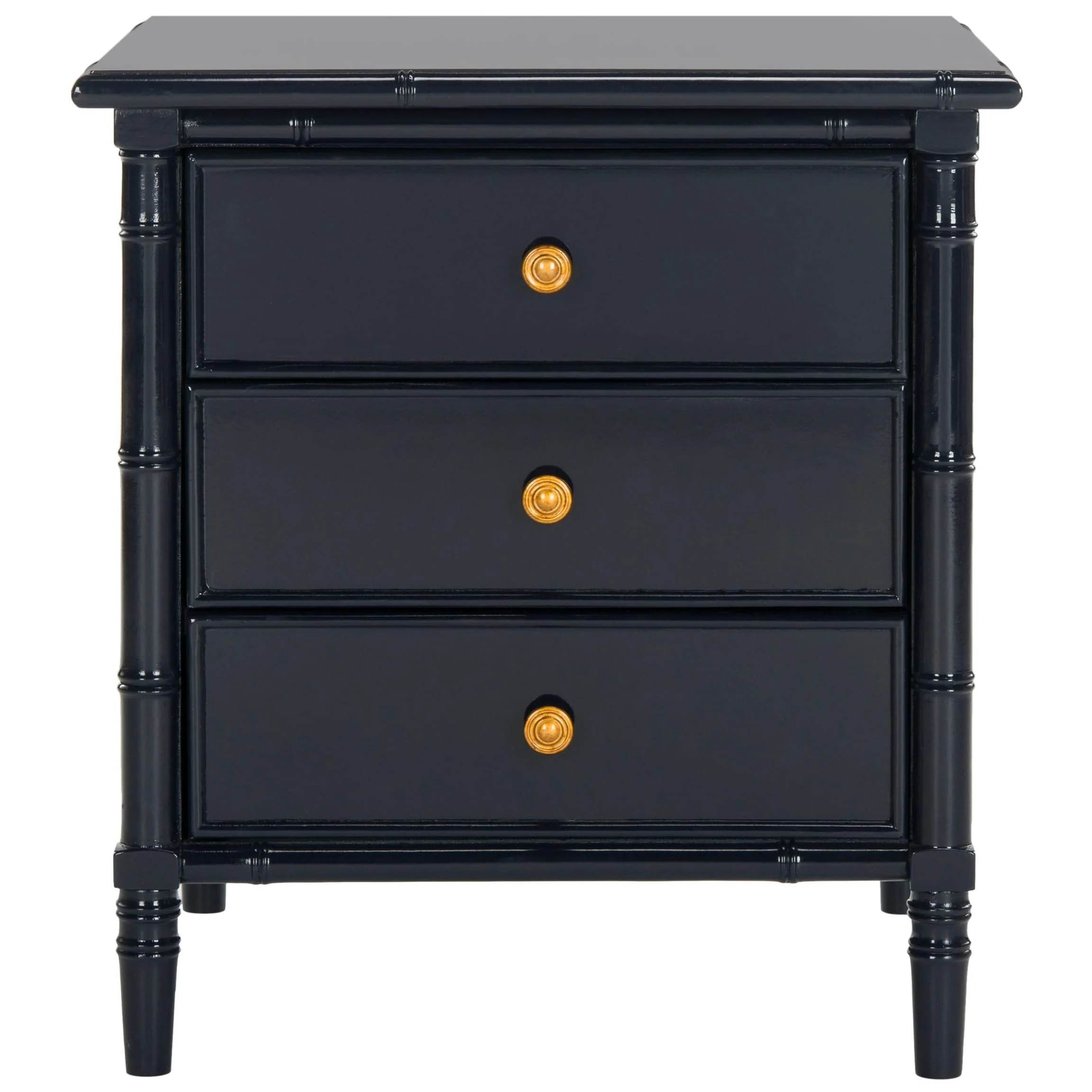 SAFAVIEH Jasmyne Modern Coastal 3-Drawer Navy Bamboo Nightstand
