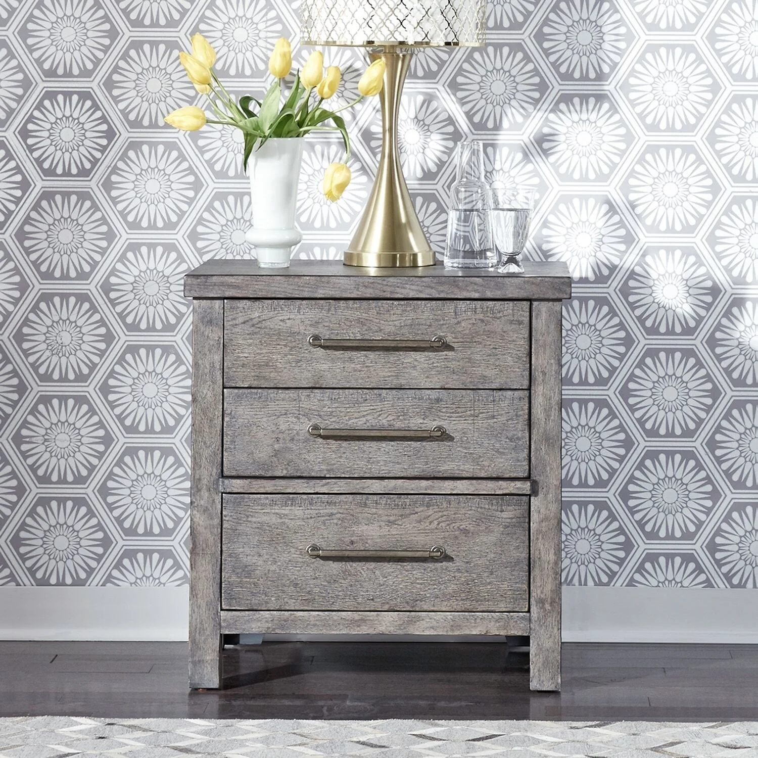 Modern Farmhouse Dusty Charcoal Distressed 3 Drawer Night Stand