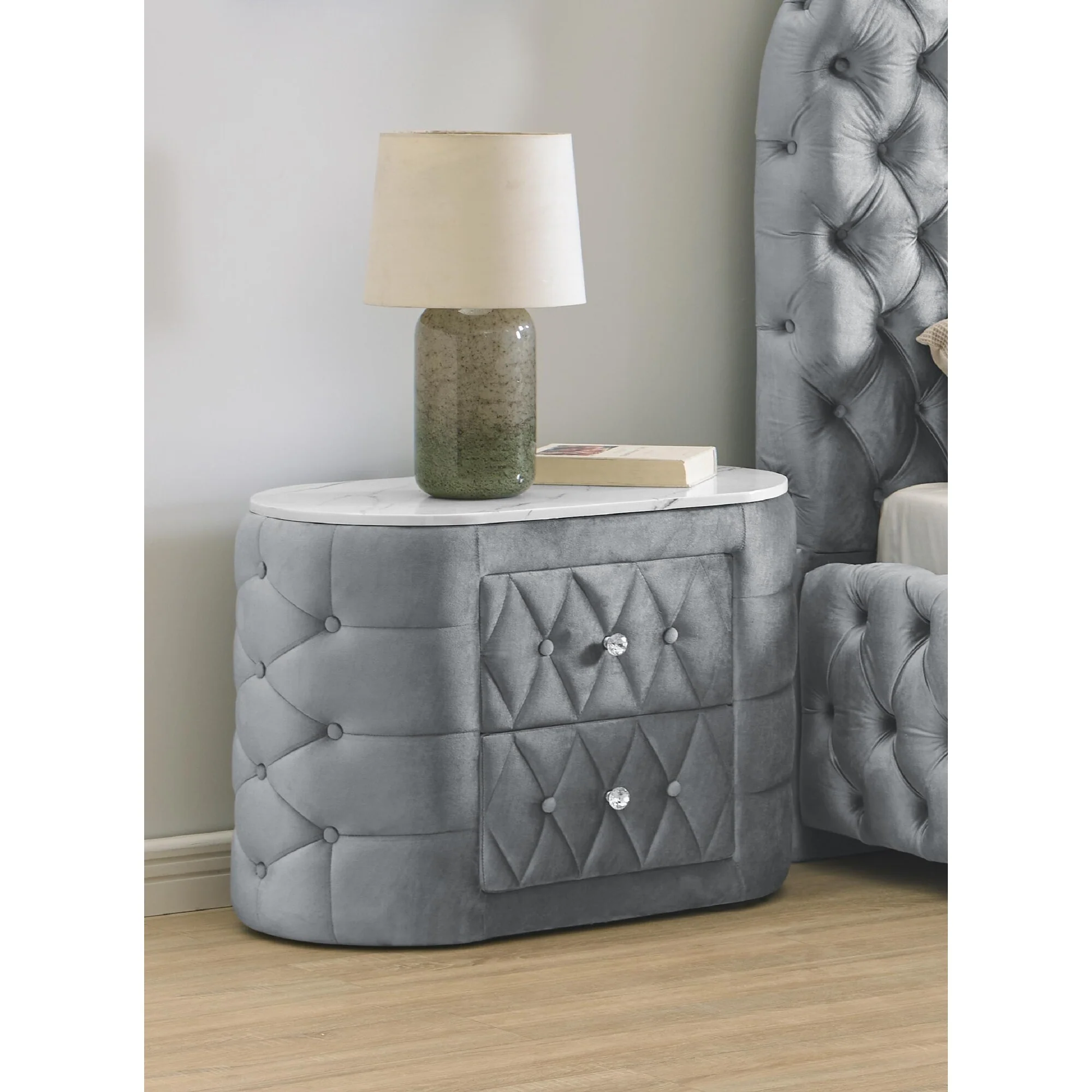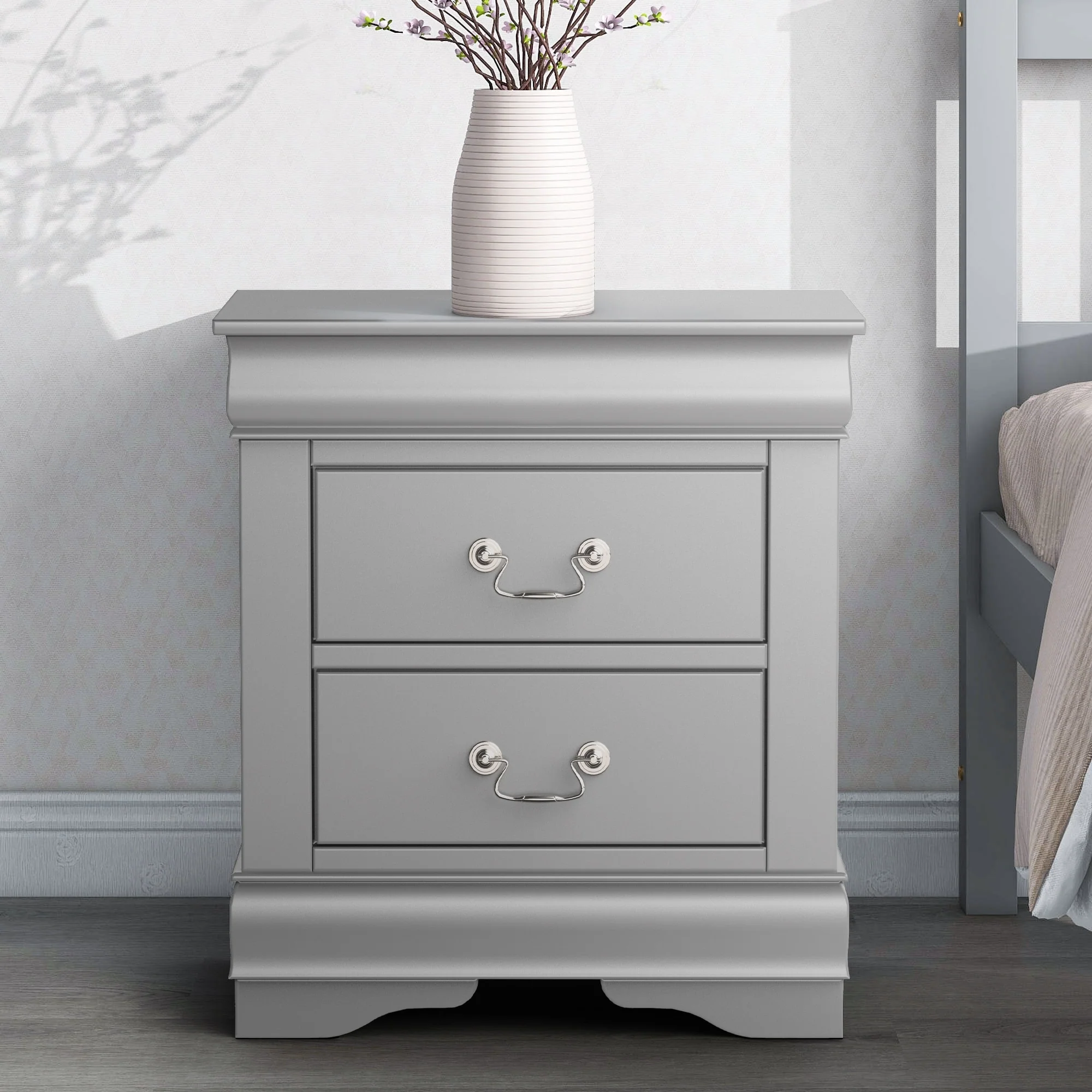 Modern Grey Solid Wood 2-Drawer Nightstand Bed Side Table