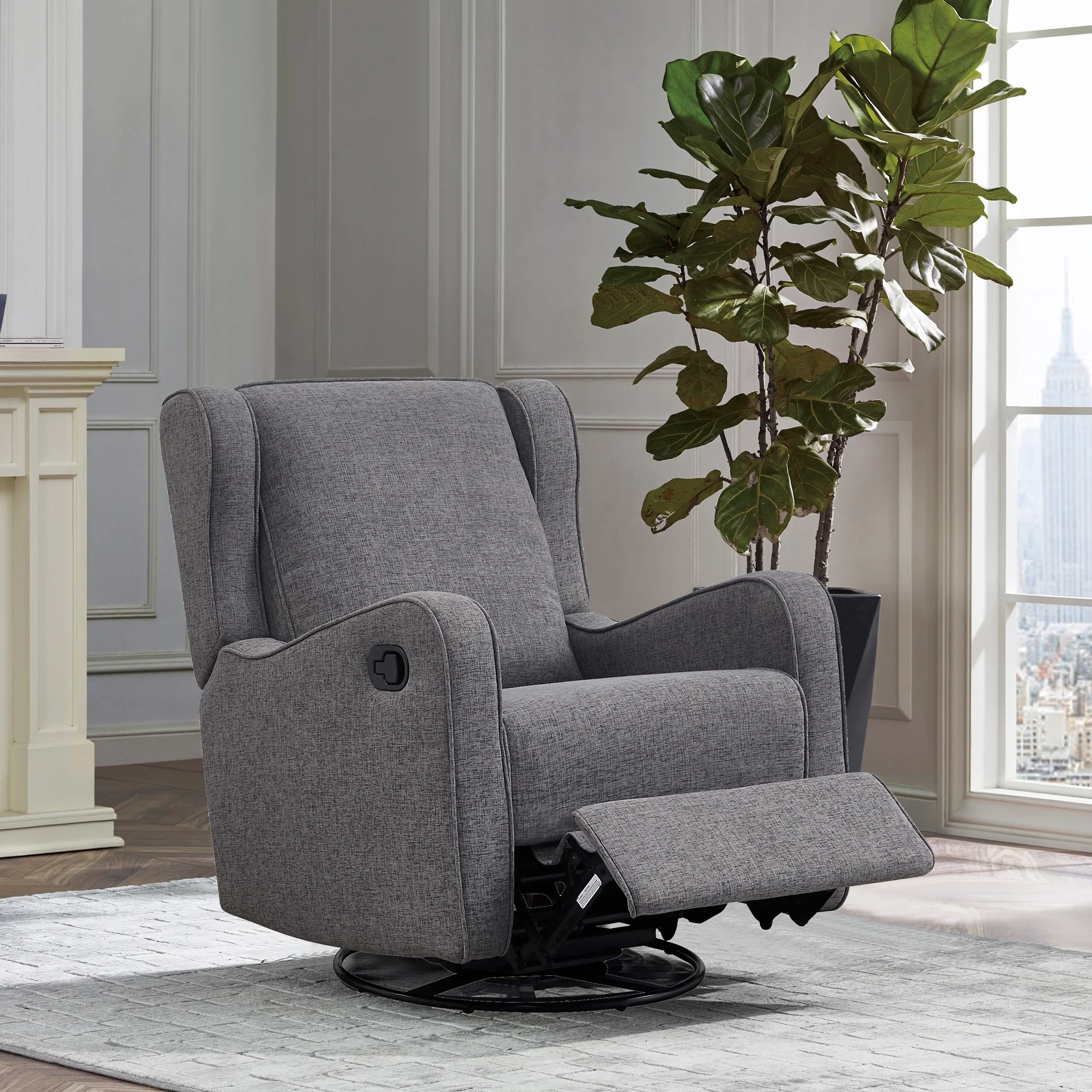 Modern Upholstered Plush Seating Glider Swivel Recliner Chair