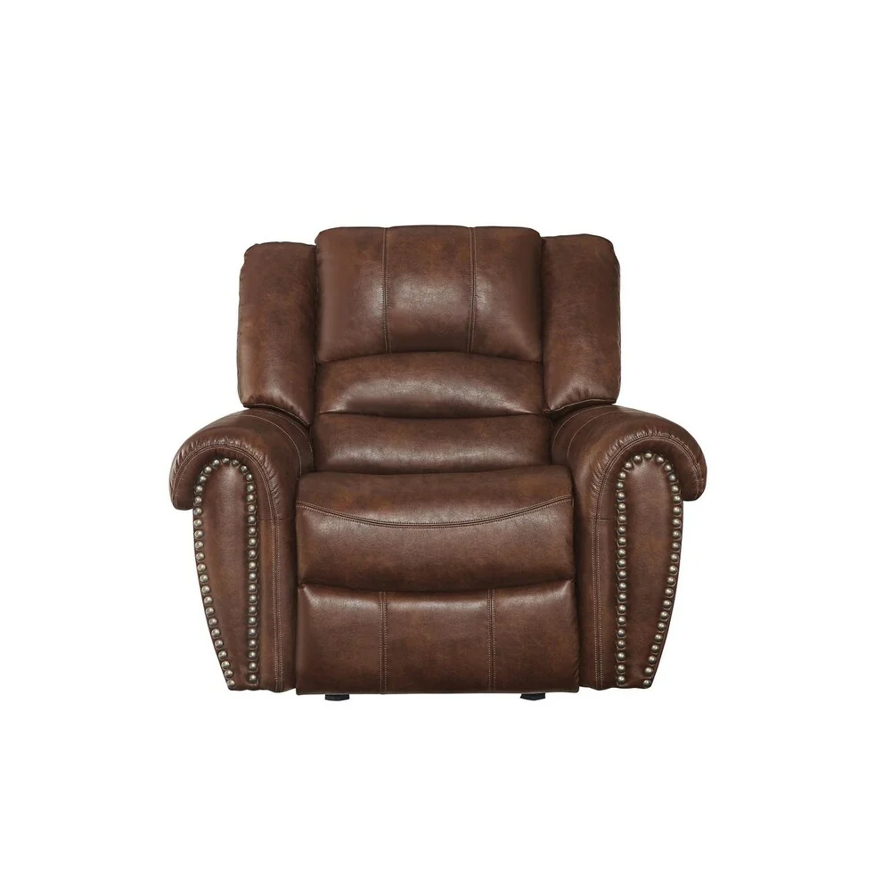 Glider Reclining Chair In Leather Gel Match Upholstery, Saddle Brown