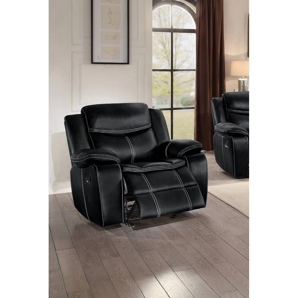 Upholstered Bonded Leather Glider Reclining Chair, Black