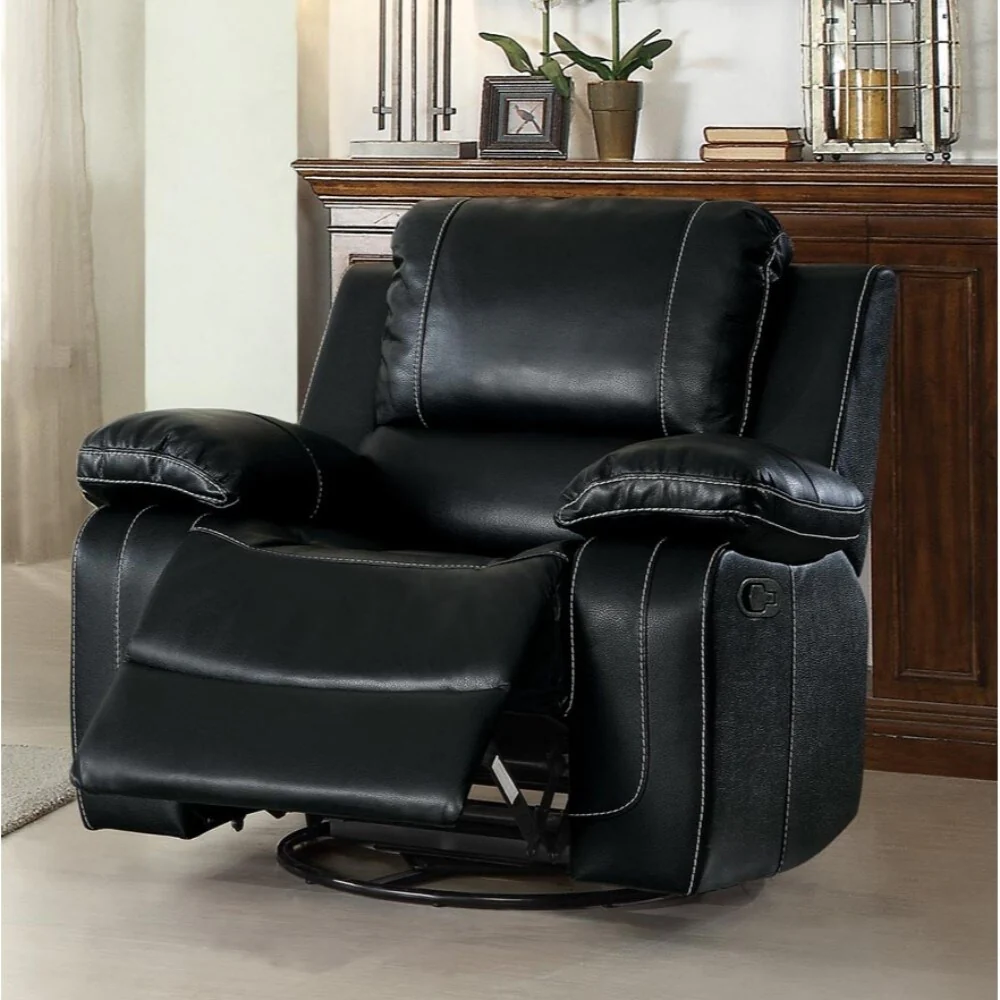 Leather Upholstered Swivel Glider Reclining Chair, Black
