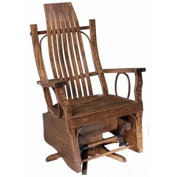 Rough Sawn Oak Flat Arm Swivel Glider Chair with Closed Sides