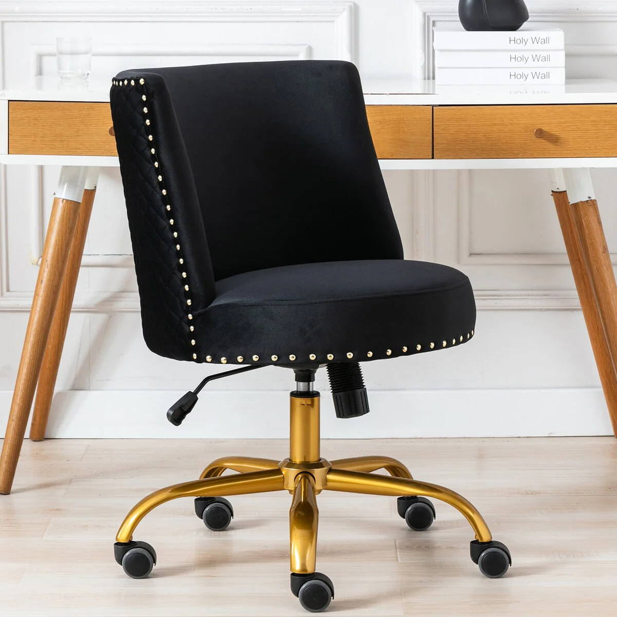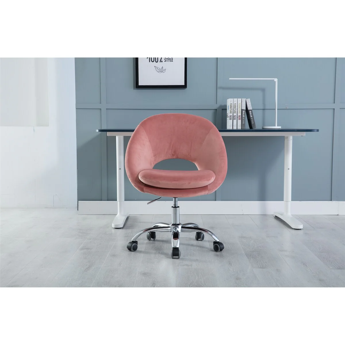 Velvet Upholstered Lift Task Chair with 360掳 Swivel Wheels