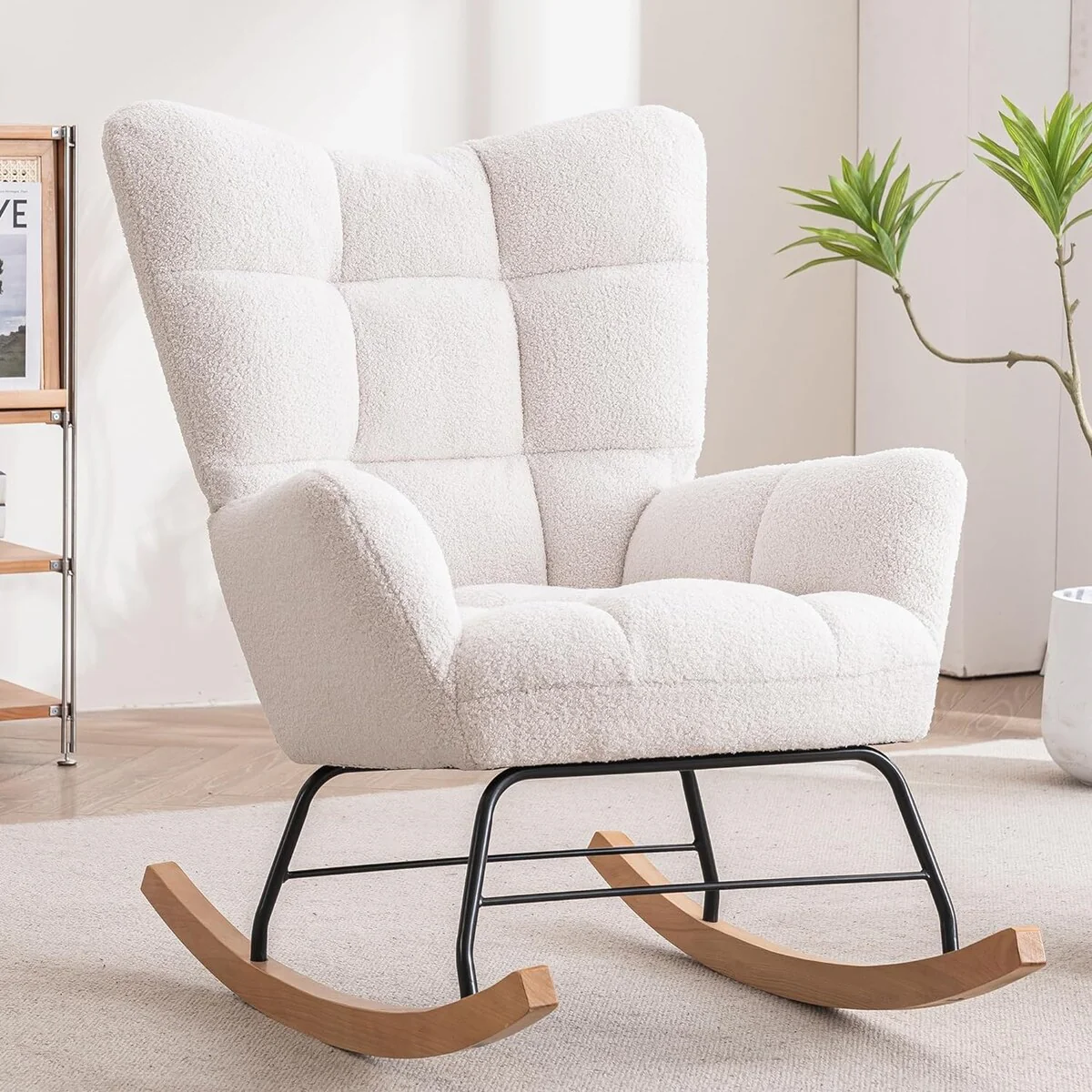 Upholstered Accent Glider Chair with Rubberwood Frame